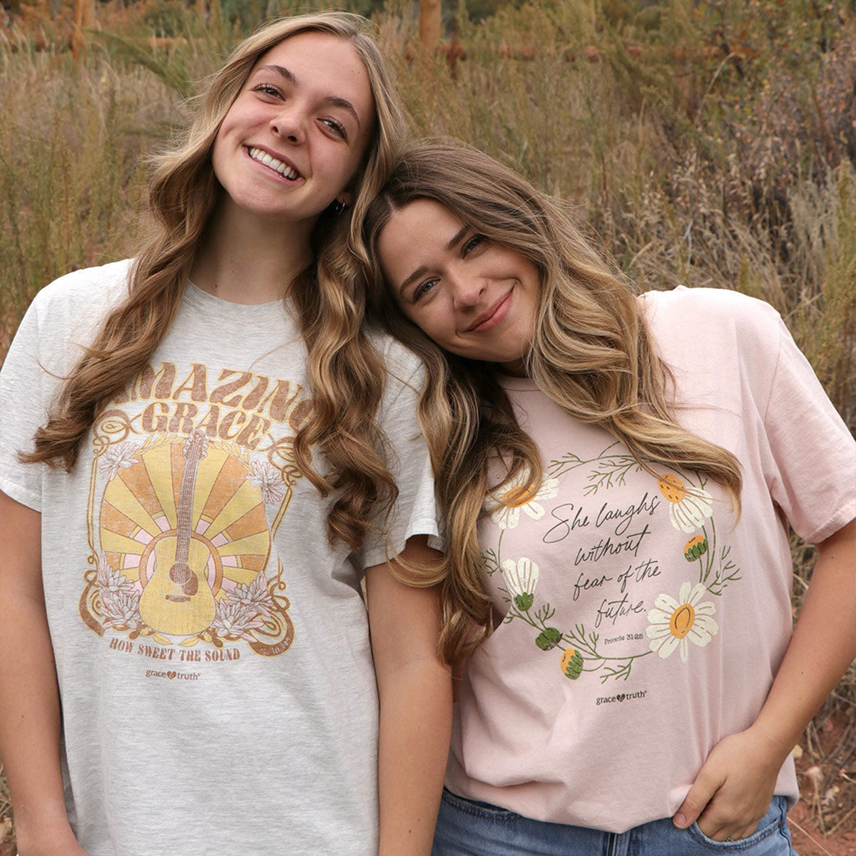 God’s grace is meant to be shared—whether through words, music, or fashion. The grace & truth® Grace Guitar™ shirt is a perfect way to share God’s grace and start conversations about faith. Let it be a testament to the amazing grace that changes lives.