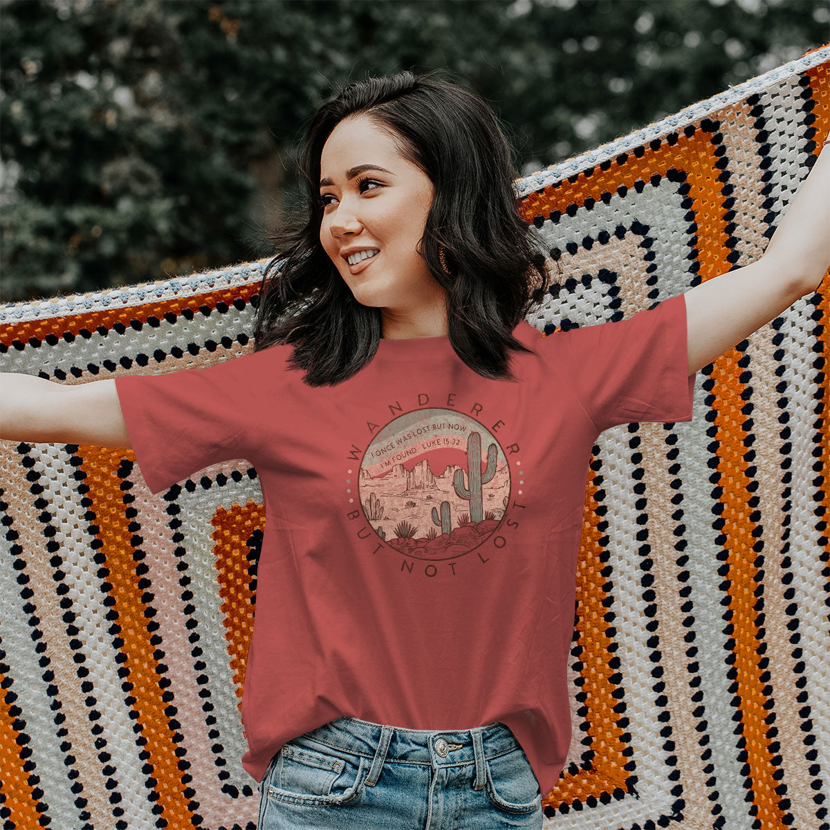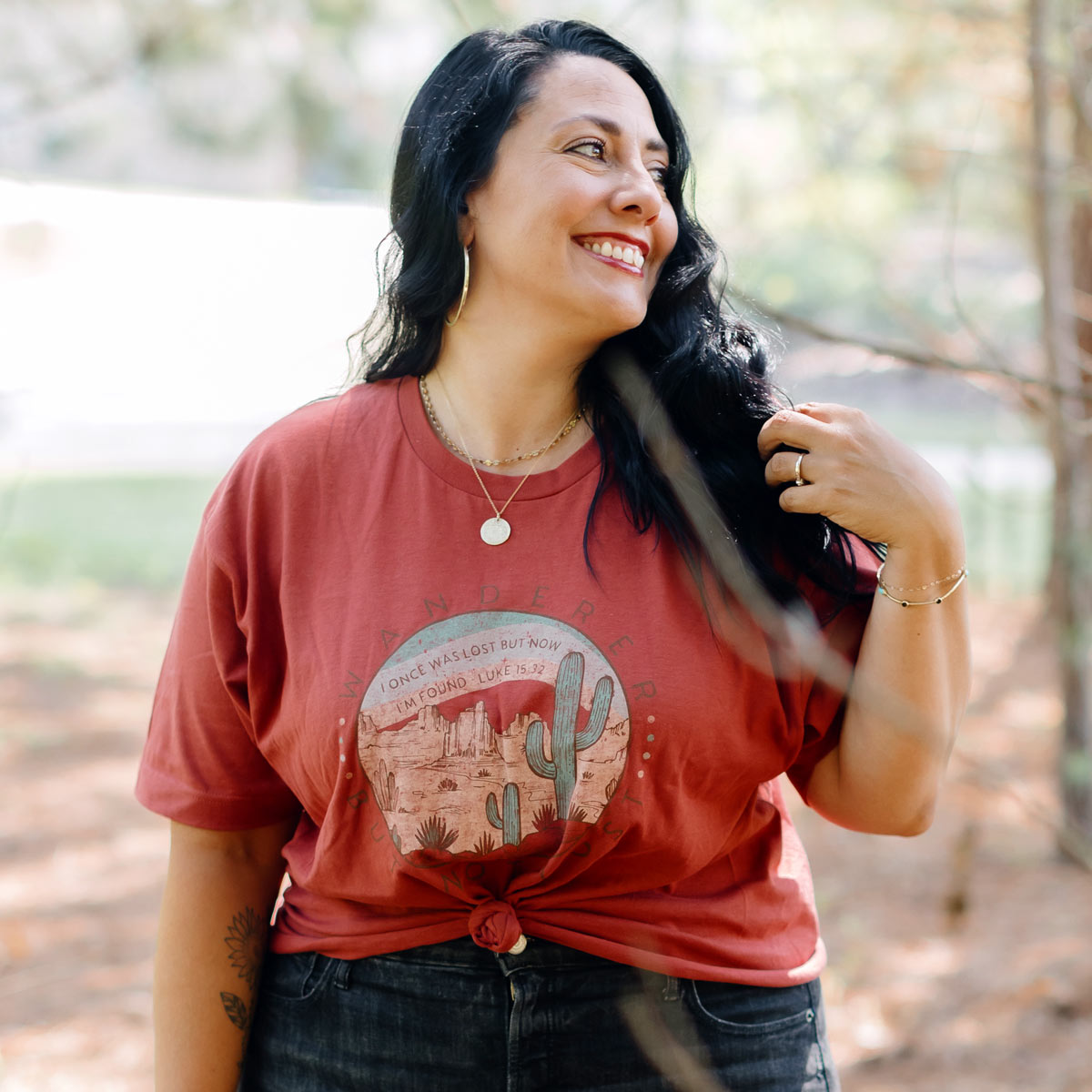 Show the world you’ve found your way in this “Wanderer” T-shirt by grace & truth® in Terracotta. This boho-inspired design is a reminder that no matter where you go, God goes with you.