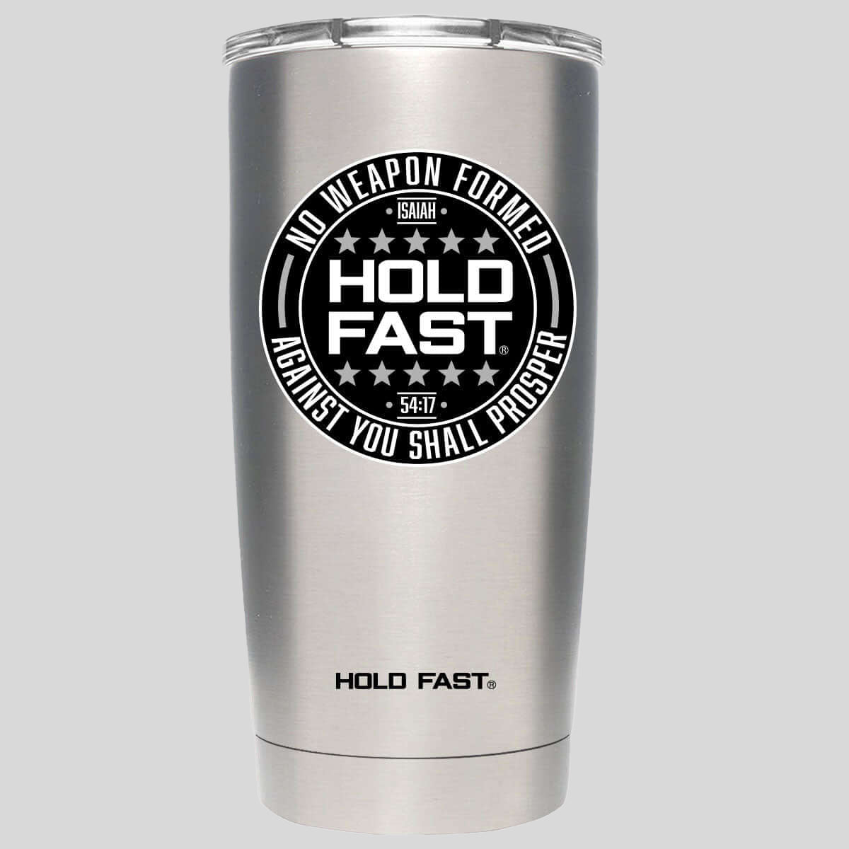 Make a confident statement about your faith with this “No Weapon” 20 oz. Stainless-Steel Tumbler by HOLD FAST® in Silver. As you grow in faith God is molding your character, building you up to fulfill the good plans He has for your life. Any guy can claim to be tough, but walking the walk is more than just words, and you are a person who puts character into action!