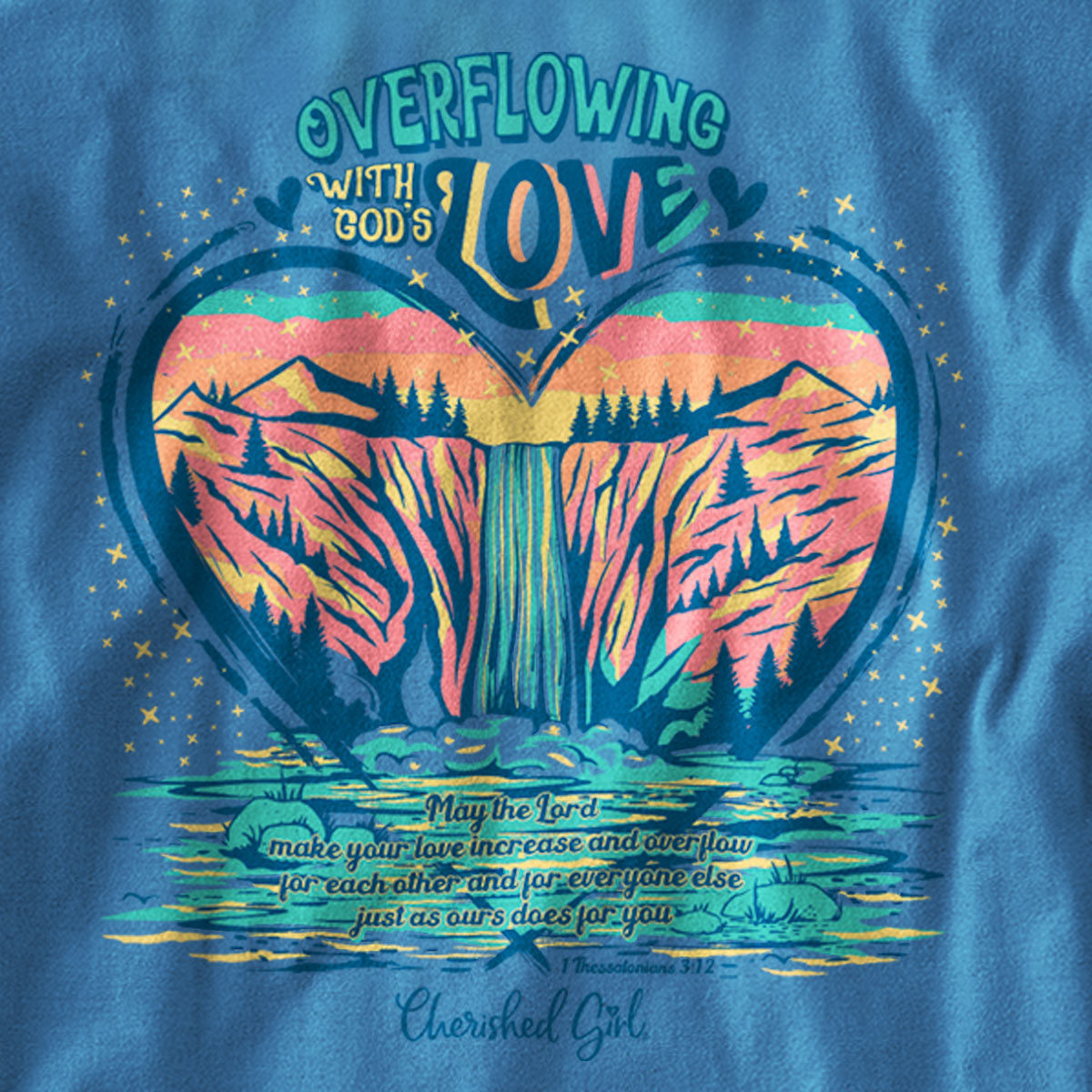 Let your heart for others shine in this pretty “Overflowing Love” Cherished Girl® Long-Sleeve T-Shirt in Columbia Blue. God loves us so much He gave us Jesus, and the Bible is filled with His beautiful promises. Let that love overflow into the lives of others, that they may see Jesus in you.