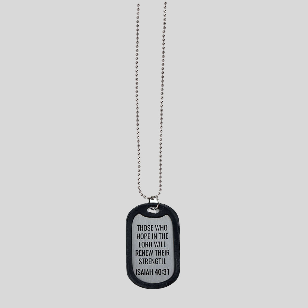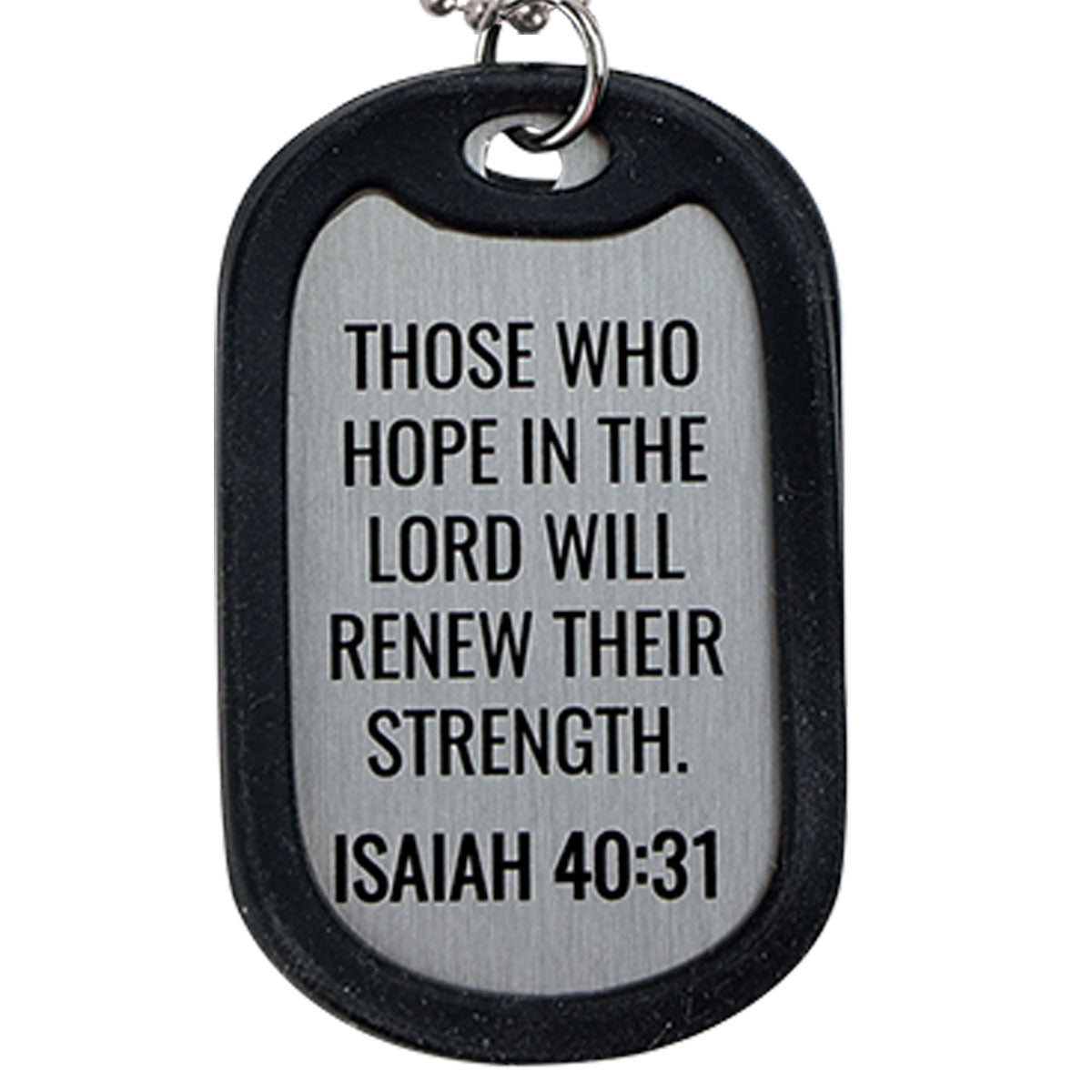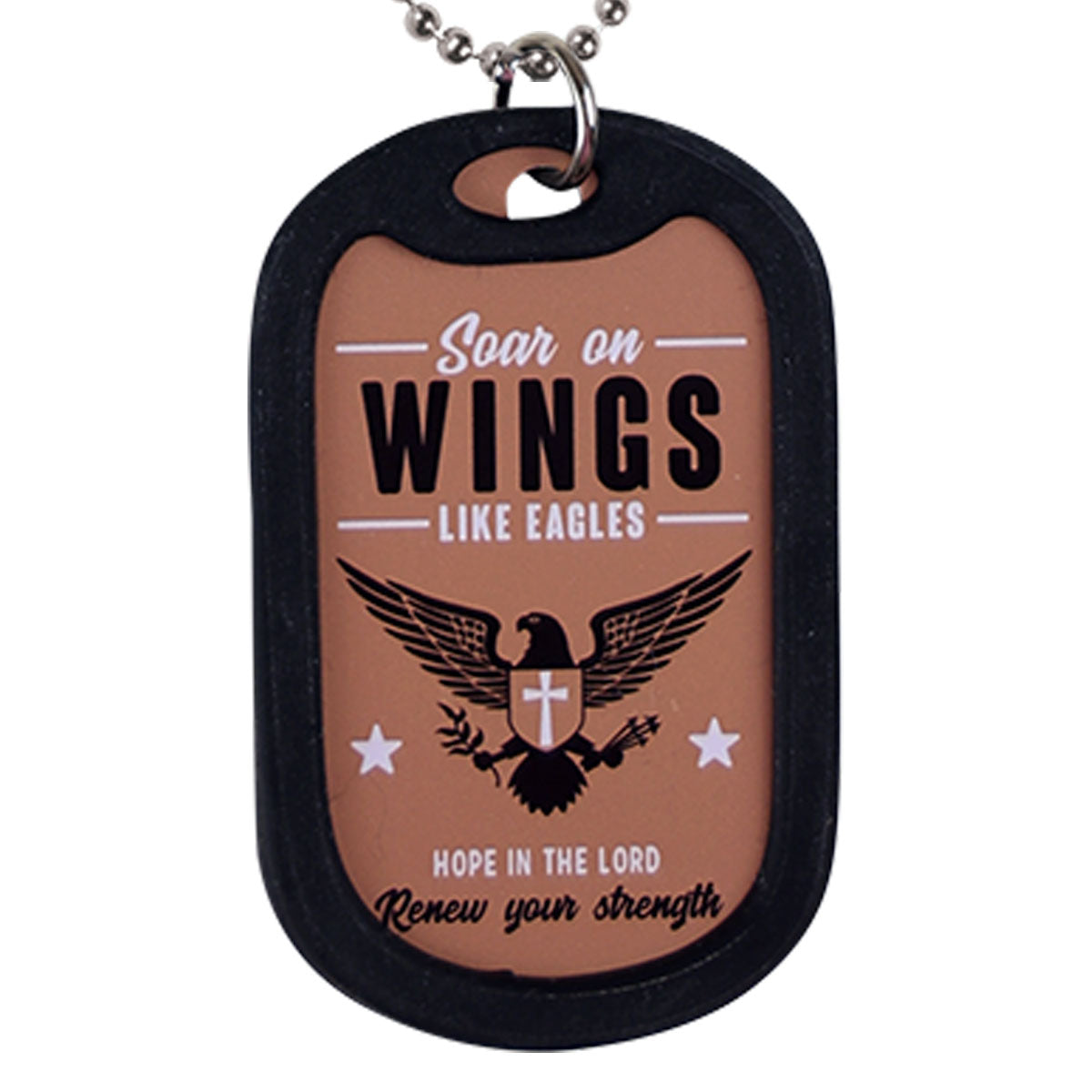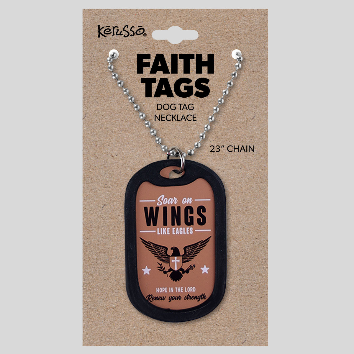 Renew the strength of your faith in this cool “Wings” Faith Tag Necklace by Kerusso® in Tan. The Lord promises to continually renew our strength for the journey, and even to give us wings to soar above it all. With God, all things are possible, and He promises to lift us up and give us everything we need to claim victory at the finish line.