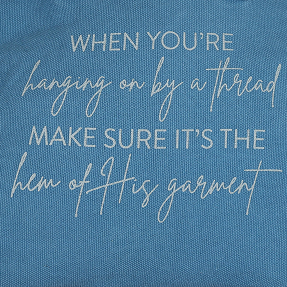 Share the hope you’ve found in Jesus with this inspirational “Hem Of His Garment” Tote Bag by grace & truth® in Blue. When life feels like it’s unraveling, the faithful don’t give up…they look up, and give it to God! There is no situation beyond hope, no place beyond help, when we place our trust in the Lord.