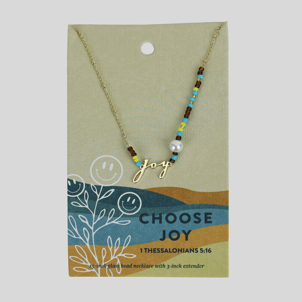 Look on the bright side when you wear this sweet “Choose Joy” Necklace by grace & truth® in Gold featuring a delicate cursive ‘joy’ charm, glass beads, and a stylish pearl. Following Jesus doesn’t mean every aspect of our lives is easy, but it does mean no matter how tough our circumstances, we have reason to be grateful for His blessings.