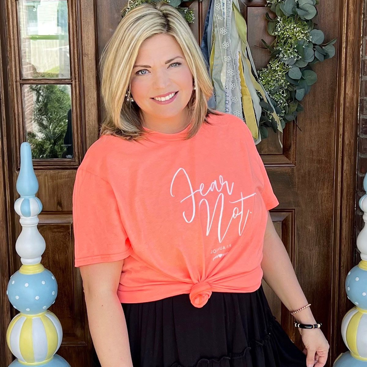 Clothe yourself in strength when you wear this encouraging “Fear Not Script” grace & truth® T-Shirt in Coral Heather. A life of faith leaves no room for fear. God has a good plan for us, and the gift of salvation means we need not fear the future…come what may.