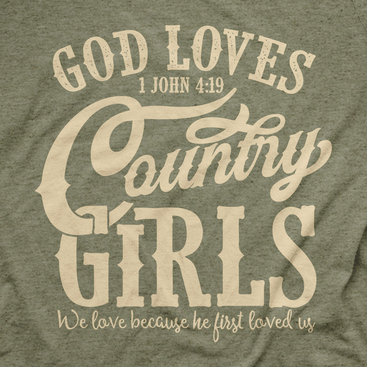 Show the world you are a beloved daughter of the King of Kings in this “God Loves Country Girls” grace & truth® T-Shirt in Moss. Wide-open spaces, sunshine, fresh air, and the beauty of God’s creation...these blessings are what country girls love best. So go ahead, cowgirl up! Show your true self to everyone you meet. #CountryGirl