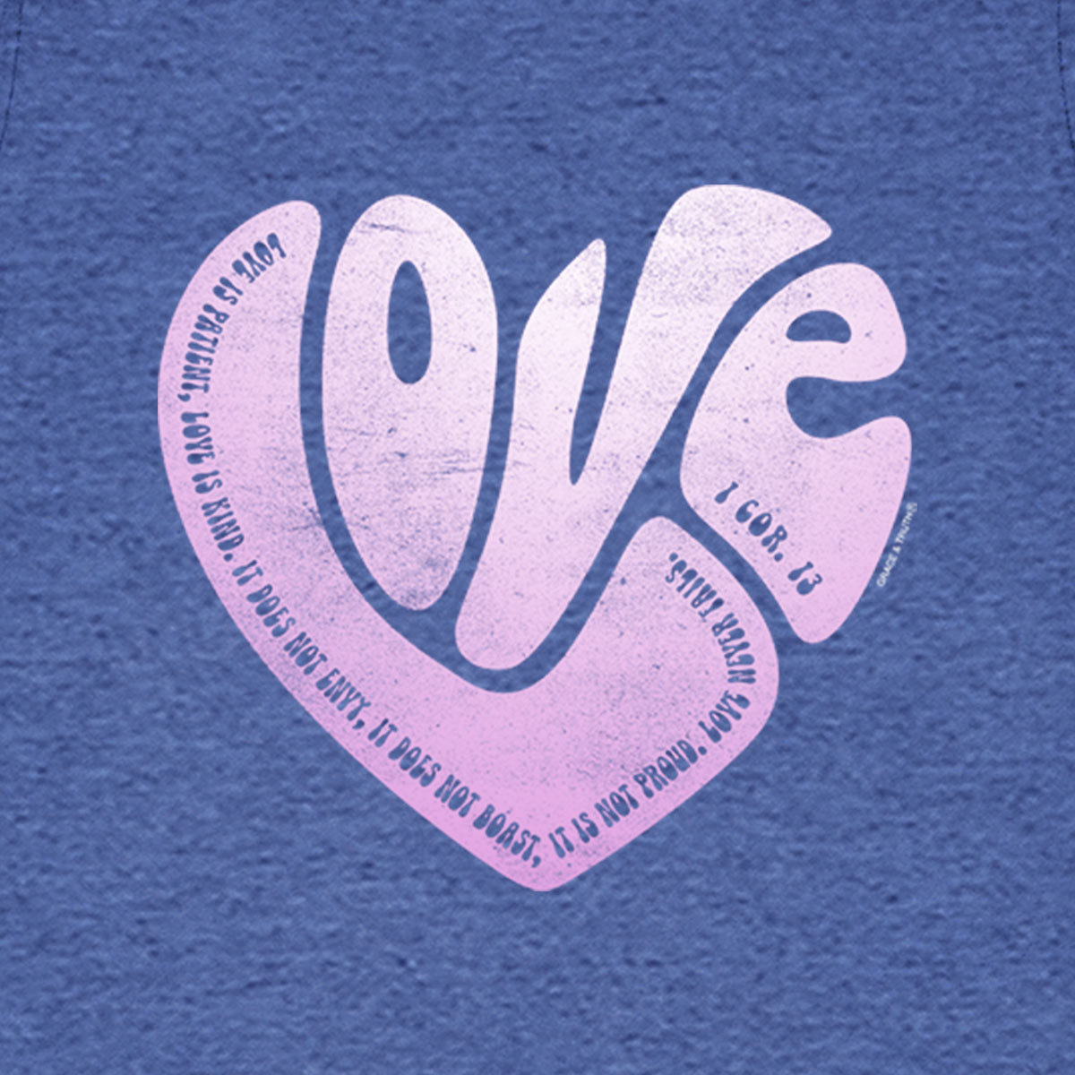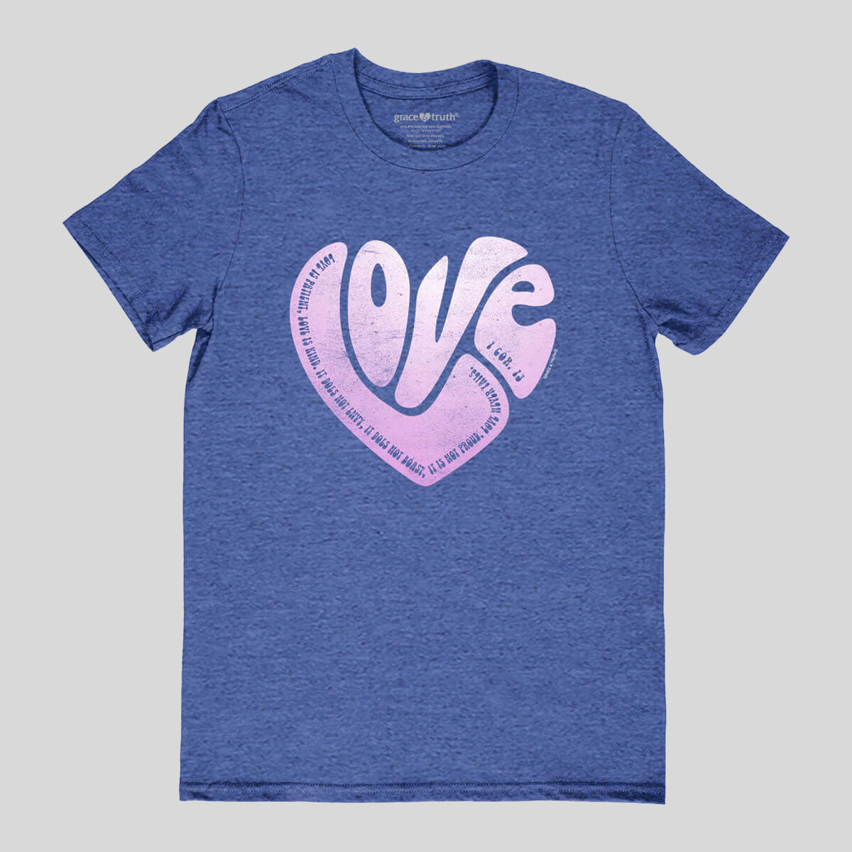 Share God’s love with the world in this vintage-inspired “Love Heart” T-shirt by grace & truth® in Retro Heather Royal. What the world needs yesterday, today, and tomorrow is the love of Jesus, and we have the capacity to bless others with that love at every turn.