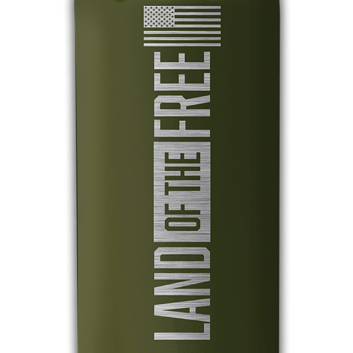 Declare your freedom with this patriotic “Land Of The Free” Stainless-Steel Bottle by HOLD FAST® in Military Green. We live in the land of the free and home of the brave because of the men and women who choose to stand and set their faces toward victory. This quality sweat-free bottle keeps drinks piping hot or ice-cold for hours. It’s a practical vessel for home, work, the gym, or the car.