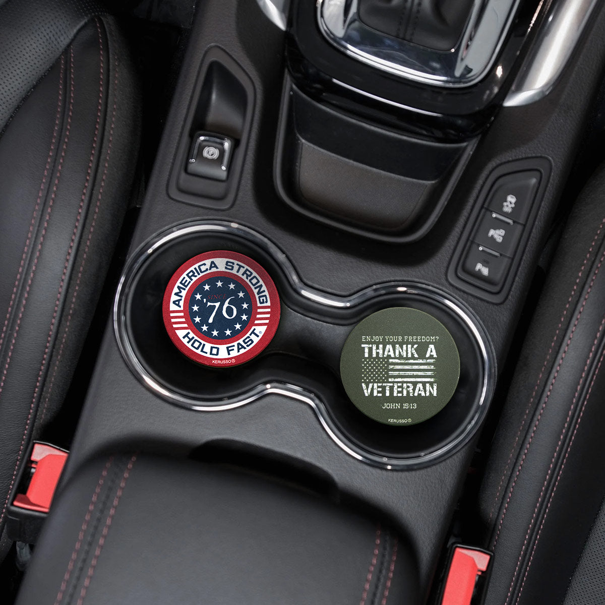 Celebrate faith and freedom with the “America Strong” Car Coaster by Hold Fast®. Featuring a patriotic emblem with stars and stripes, this design honors strength, resilience, and American heritage.