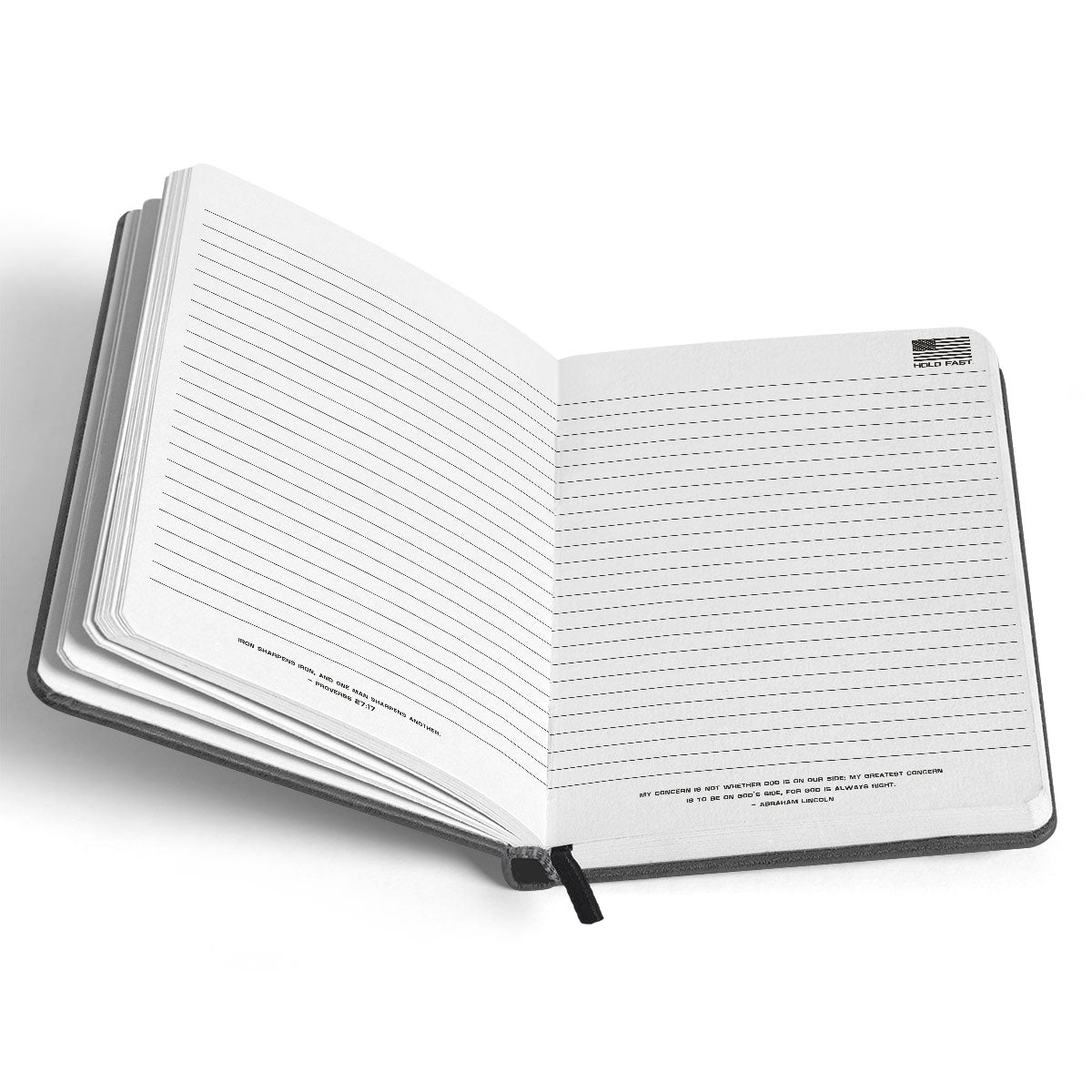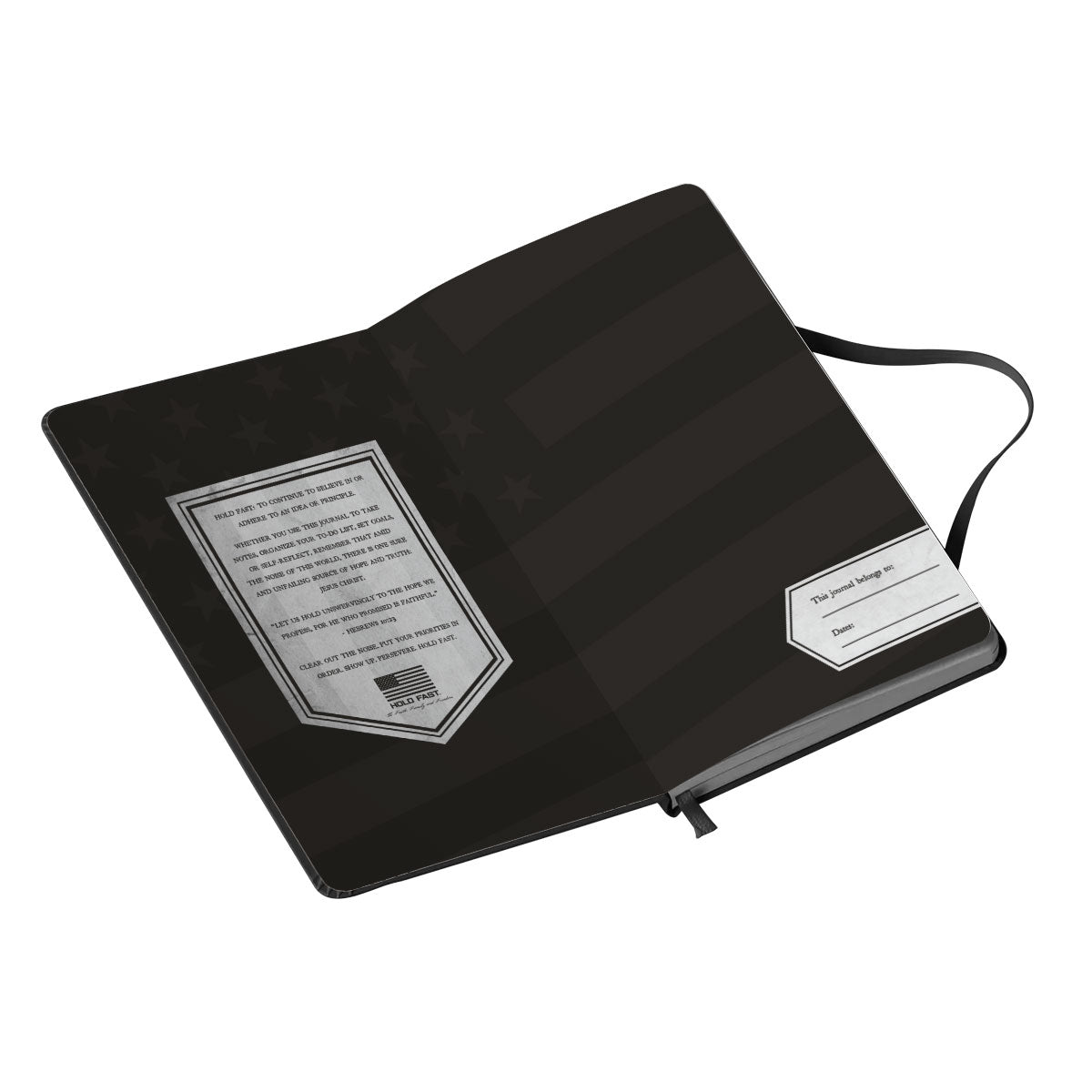 Record meaningful thoughts and important details in this handsome “Hold Fast Flag” Journal in Black by HOLD FAST®. Bible reading, goal-setting, self-reflection...there are many reasons to keep a journal. This quality men’s journal is an excellent way to record notes, and feature scripture or inspirational quotes on every page.