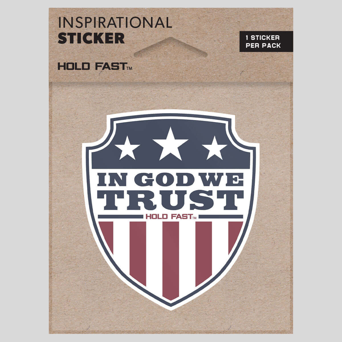 Make a strong statement of faith with this In God We Trust sticker by HOLD FAST®. The Lord is a mighty fortress of strength on your behalf, and there is no force of darkness on this earth that can defeat Almighty God. Stand firm in your faith, and trust in the Lord. He has a plan for you in every battle.