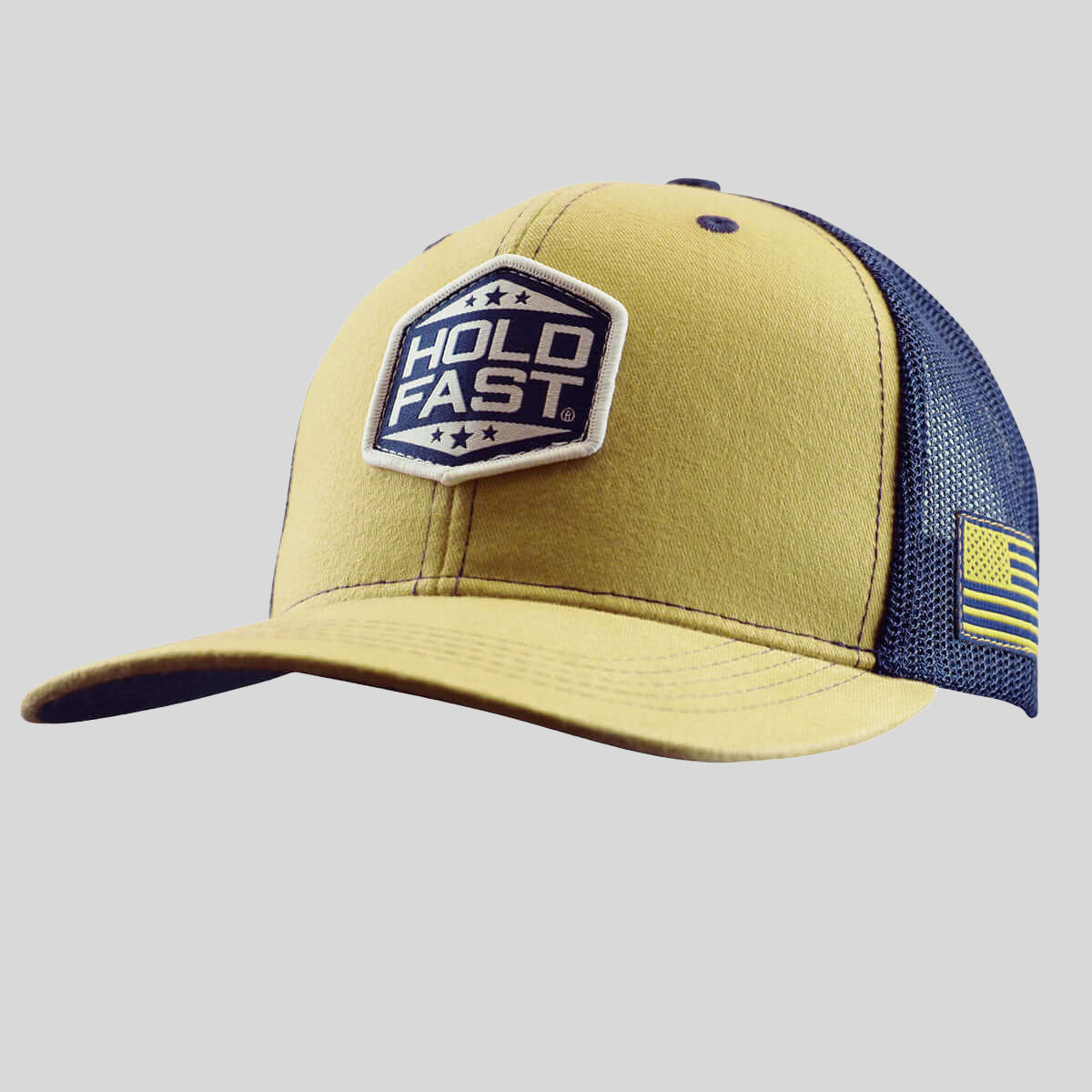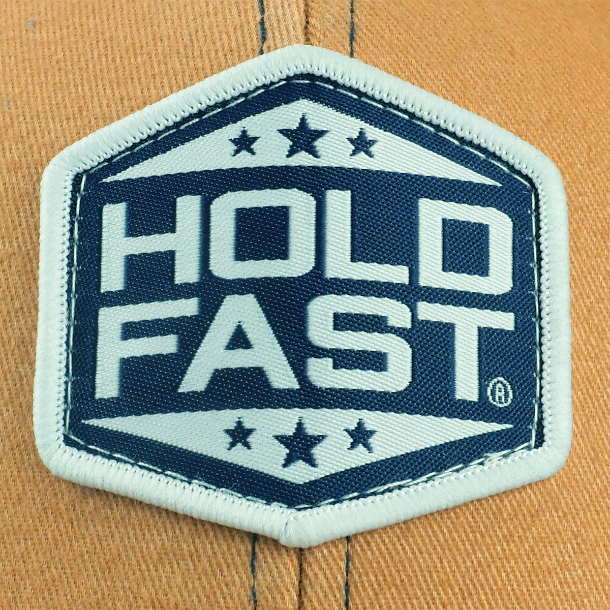 Give a nod to your beliefs in this handsome “Workman” Cap by HOLD FAST® in Tan/Navy. Hold fast to faith, family, and freedom. We can celebrate these things because of the sacrifice of those who serve in the United States Armed Forces, and ultimately because of the sacrifice of our Lord and Savior, Jesus Christ.