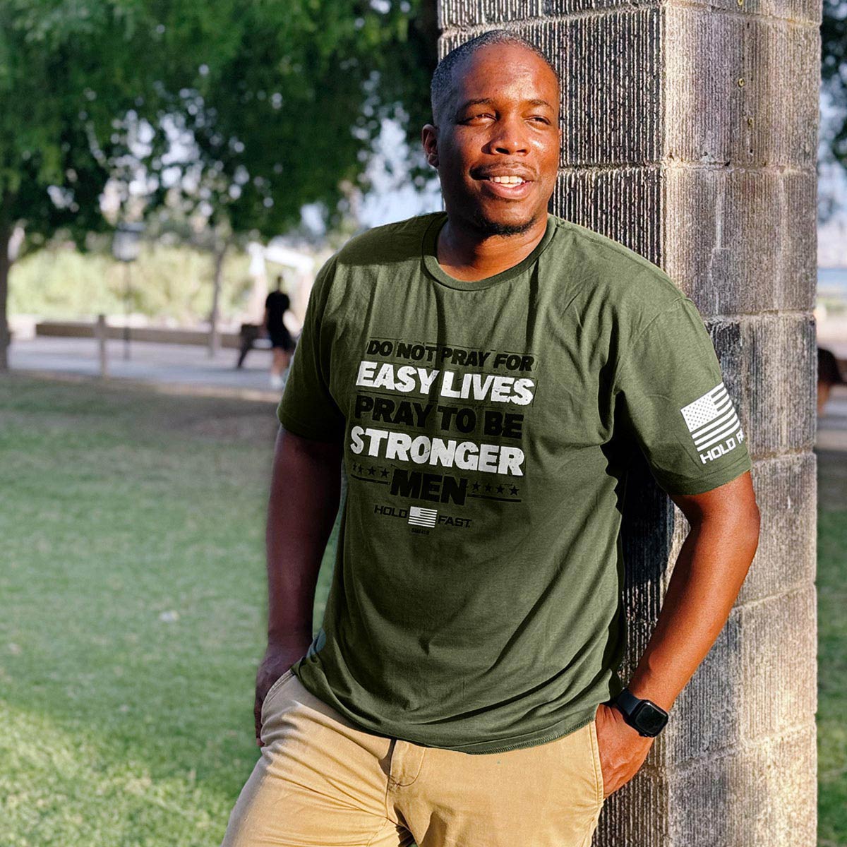 Proclaim the strength of your faith in this rugged “Stronger Men” Hold Fast® T-Shirt in Moss. Fear has no place in the lives of men who follow the Lord. God’s strength knows no bounds, and we are backed by His might every step we take in faith.