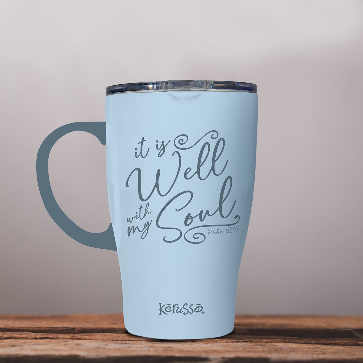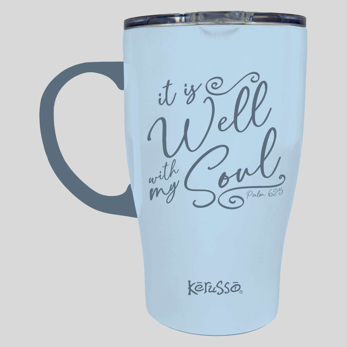 Seek hope in the Lord with every sip from this serene “It Is Well” Kerusso® 15 oz. Stainless-Steel Mug with Handle in Blue. It’s a practical vessel that keeps drinks ice-cold or piping hot for hours—perfect for home, work, or the car. God is so good, and no matter what the hour, the day, or our life circumstances bring to pass, we can say it is well with our souls, because of the saving grace of Jesus Christ.