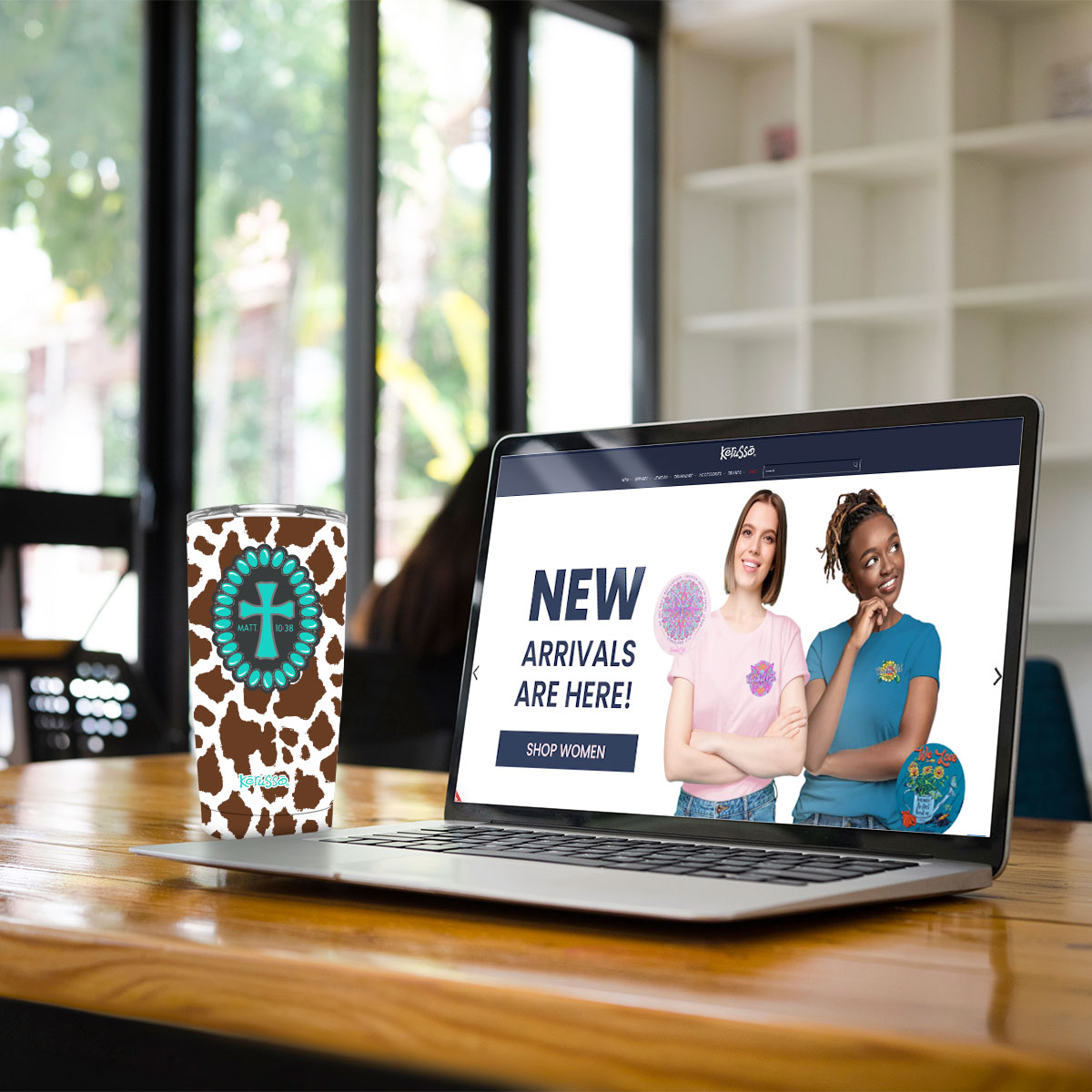 Share your intent to follow Jesus with this Western chic “Cowhide Cross” Stainless-Steel Tumbler by Kerusso® in Brown/White. North, south, east, or west, you know which direction your soul is headed when you choose to follow the Savior. This quality sweat-free tumbler keeps drinks piping hot or ice-cold for hours. It’s a practical vessel for home, work, the gym, or the car.