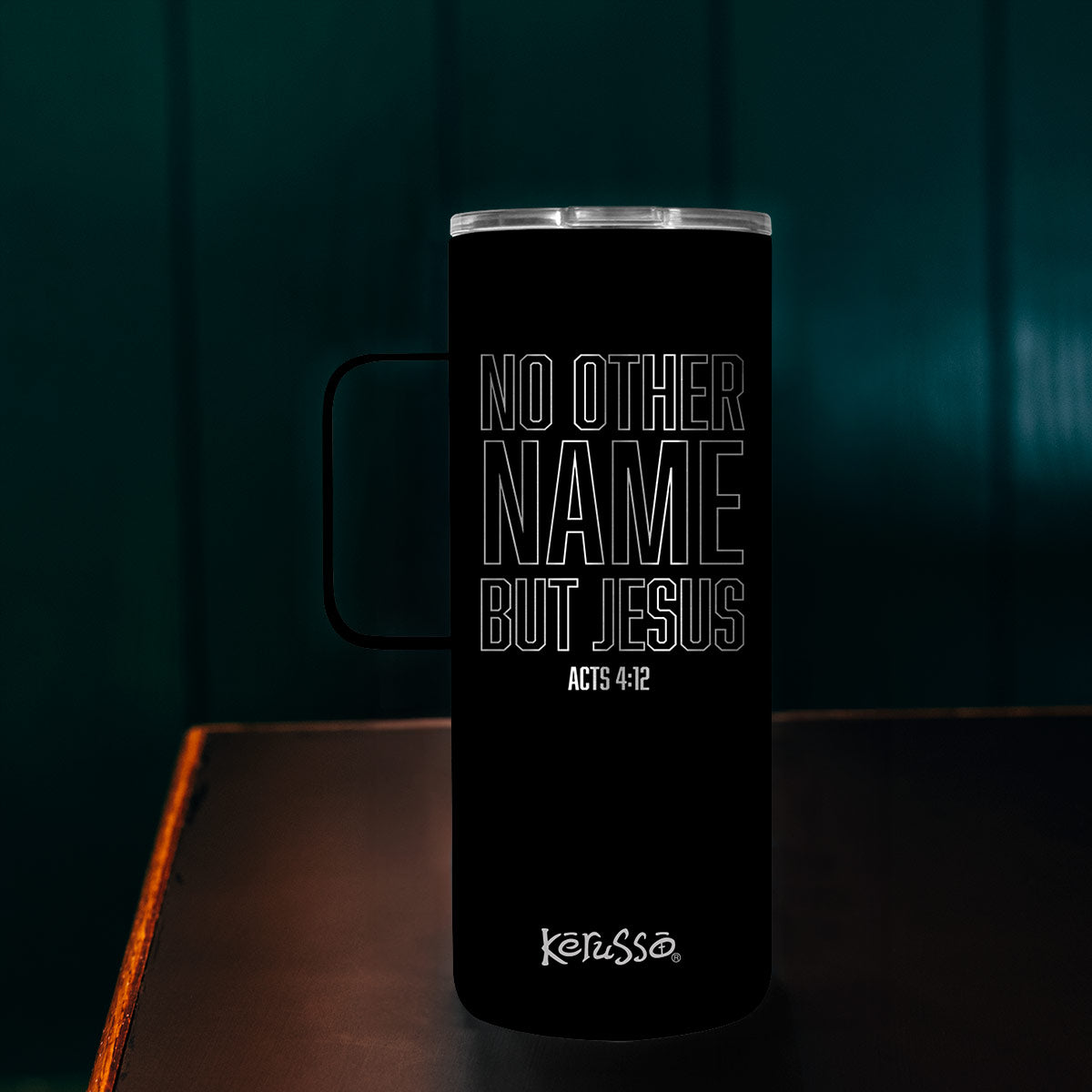 There is only one name that saves. This sleek black “No Other Name” 22 oz. Mug by Kerusso® features etched text declaring the exclusive, life-changing power of Jesus.