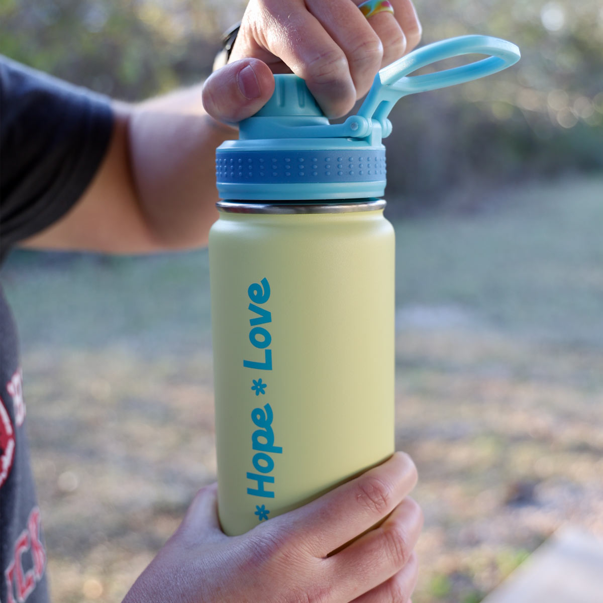Look on the bright side with every sip from this “Faith Hope Love” Stainless-Steel Bottle by Kerusso® in Yellow. Ask God to lead you to stronger faith, a more steadfast hope, and the kind of love-in-action Jesus desires for us. This inspirational sweat-free bottle keeps drinks hot or cold for hours, and it’s a durable, leak-free vessel for home, work, the gym, or the car.