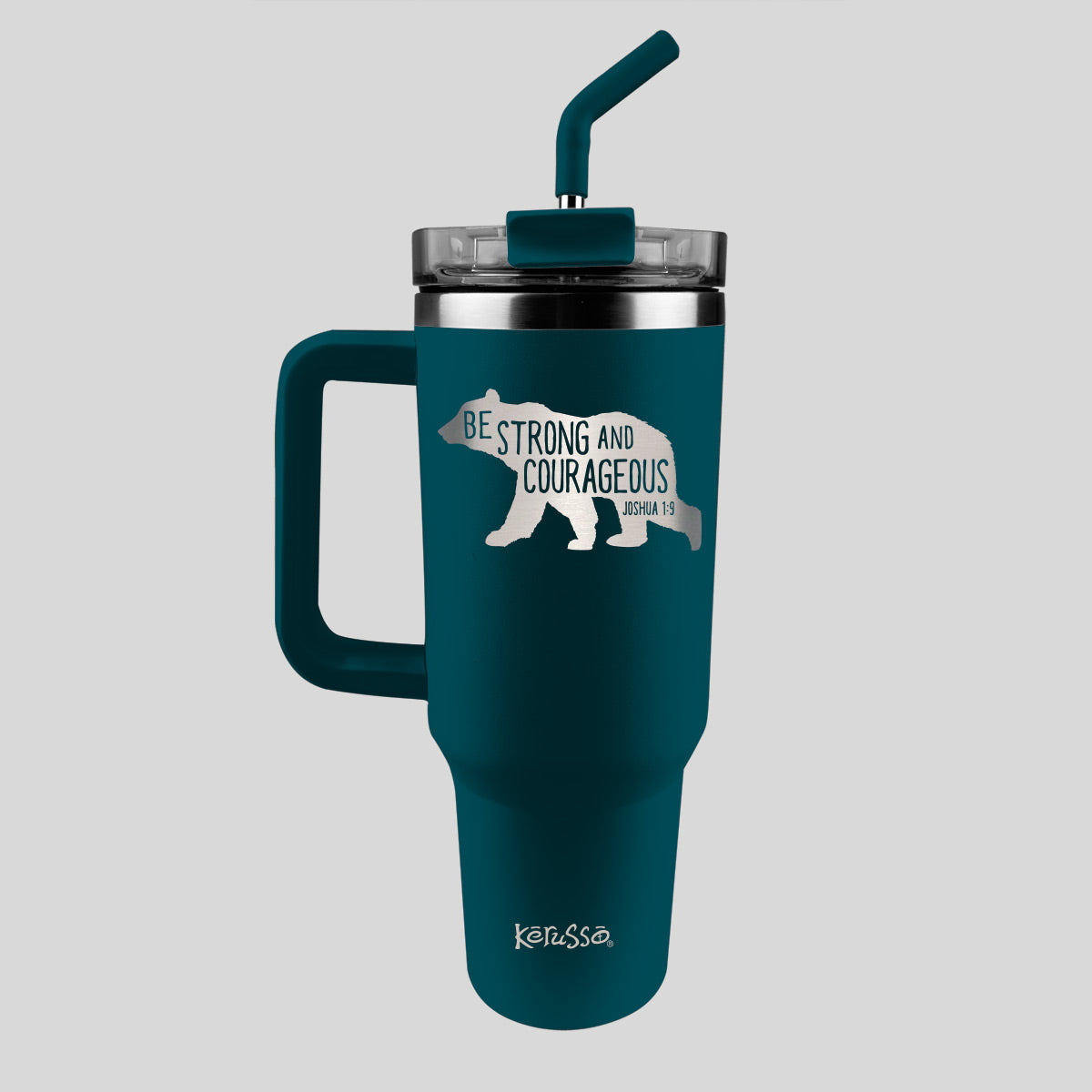 Kerusso® 40 oz Stainless Steel Mug With Straw - Be Strong And Courageous