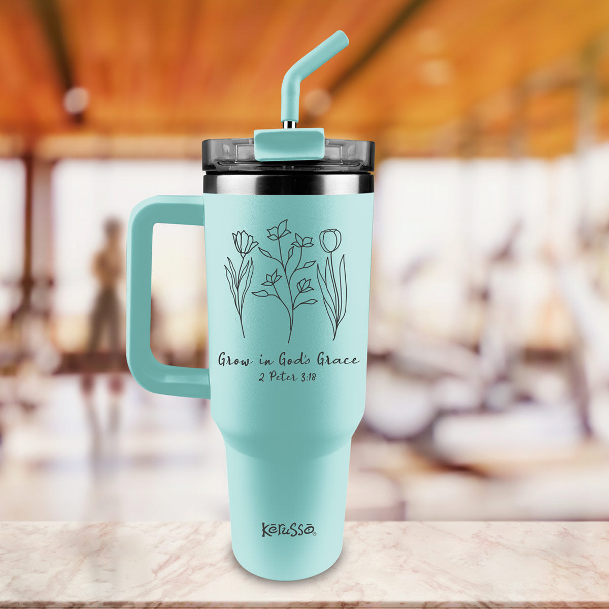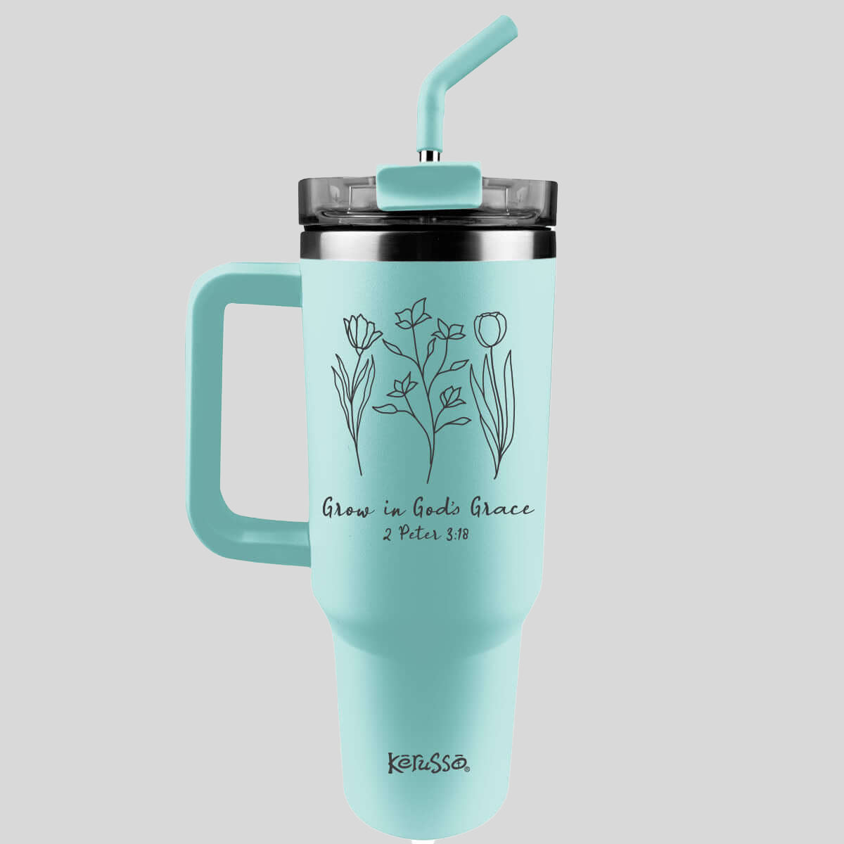 Kerusso® 40 oz Stainless Steel Mug With Straw - Grow In Grace