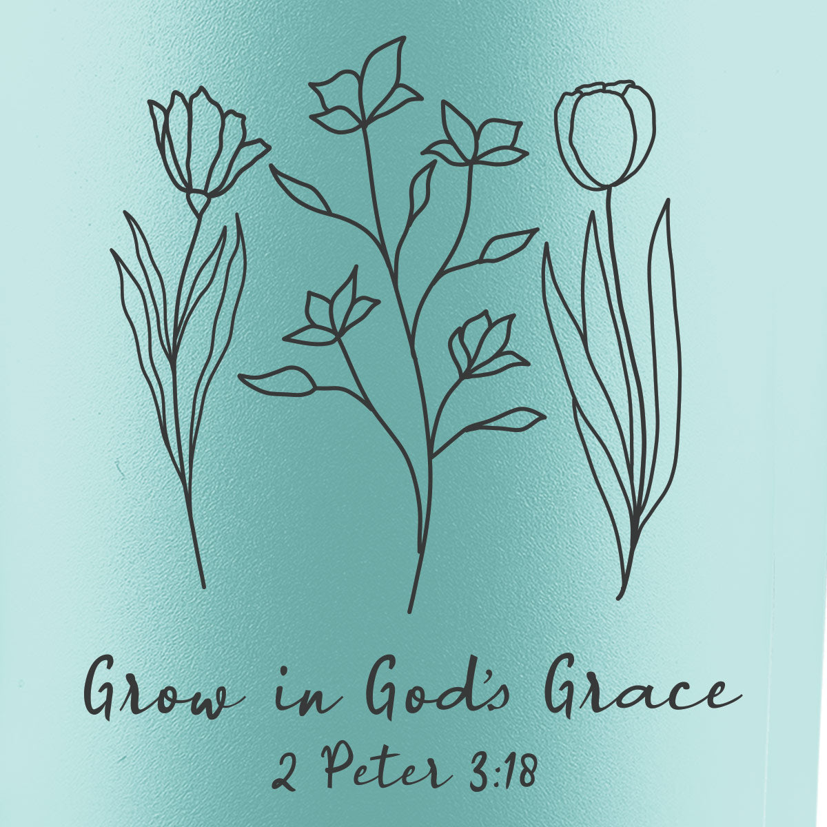 Bloom and grow with this appealing “Grow In Grace” Stainless-Steel Mug w/Straw by Kerusso® in Teal. A practical two-in-one lid allows you to sip your drink with the flip lid, or drink from the Stainless-Steel Straw with Silicone tip. Take this attractive mug along for hydration on the go, at the gym, or at the office.