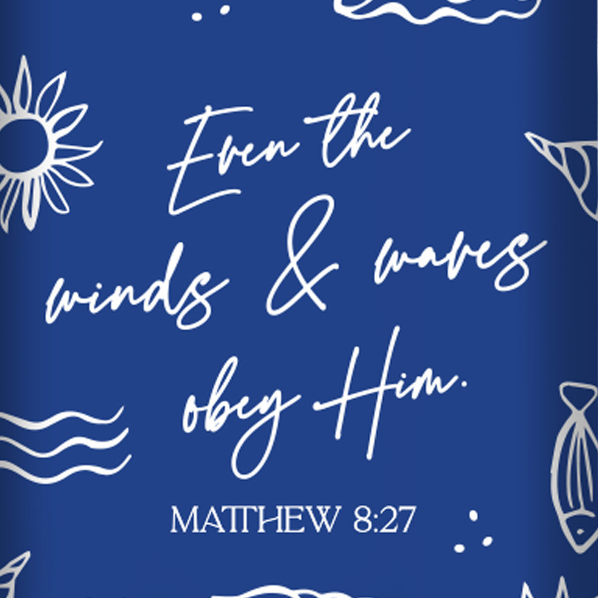 Find peace in God’s authority with the “Wind” 40 oz. Stainless-Steel Mug w/Straw by Kerusso®. Featuring coastal-inspired artwork with sun, seashells, and fish, this design highlights the powerful truth from Matthew 8:27, “Even the winds and seas obey Him.” A calming, faith-filled reminder that Christ is sovereign over every storm, near or far.