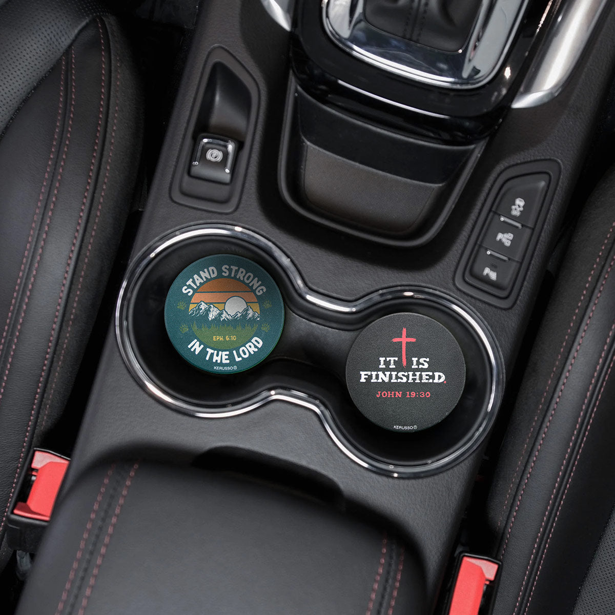 Stay encouraged with the “Stand Strong” Car Coaster by Kerusso®. Featuring mountain imagery and bold lettering, this design reminds believers to remain steadfast in faith.