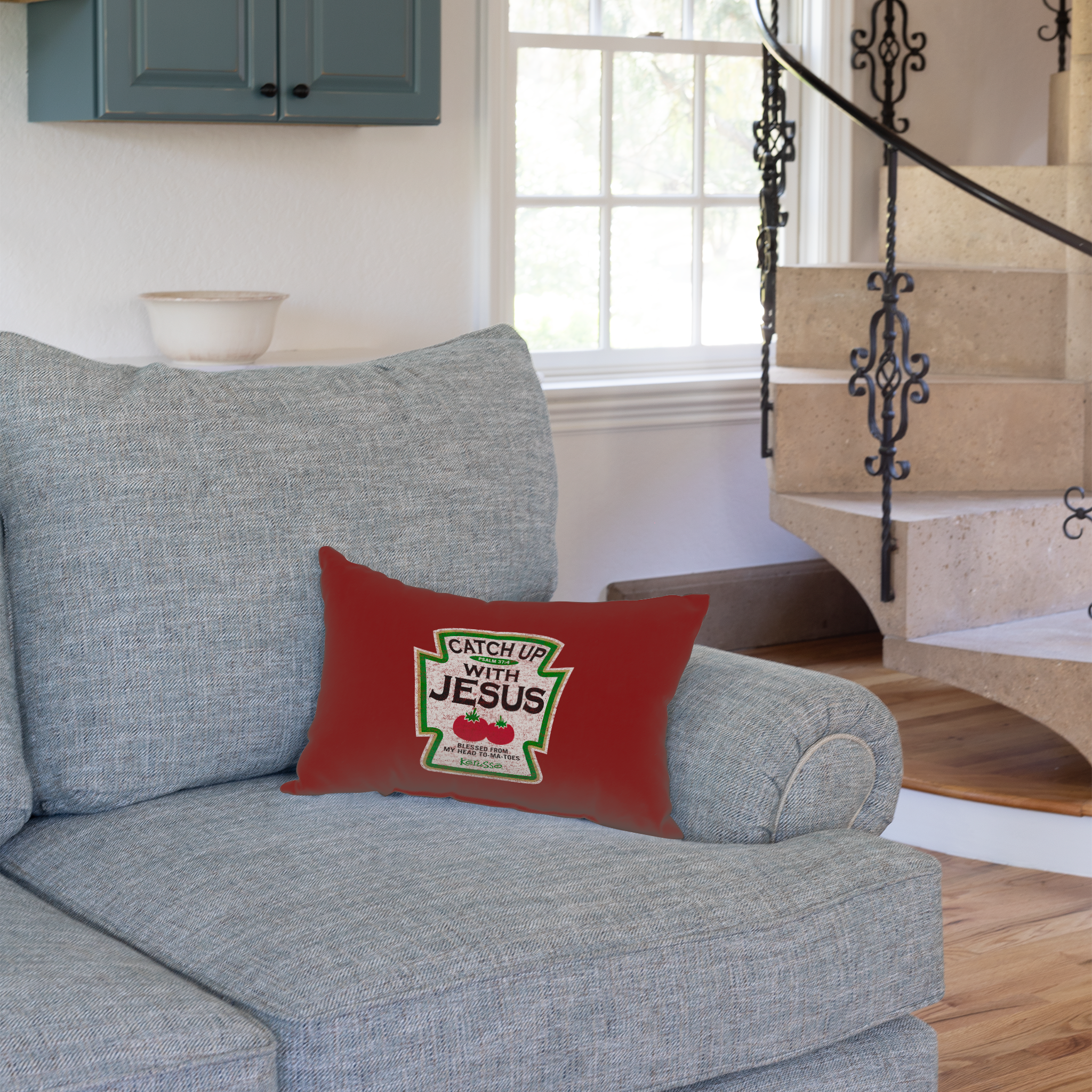 Add a playful touch to your faith with this “Catch Up” Rectangular Pillow. This humorous artwork delivers a fun twist on spreading the message of Jesus’ love and salvation. It’s a lighthearted way to engage with others and share the Good News in a memorable way. Perfect for creating joyful conversations about faith, this design encourages everyone to “catch up” with the love and grace of Jesus.