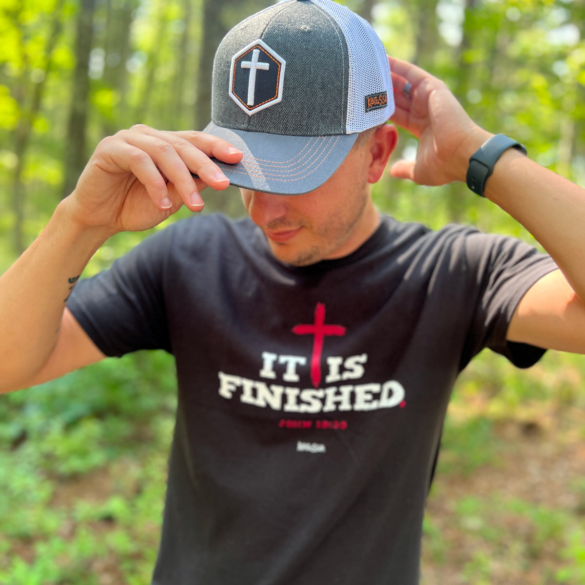 Acknowledge the greatest victory of all time in this poignant “Finished Cross” Adult T-shirt by Kerusso® in Black. The death of Jesus Christ on the cross was not the end, but the beginning of salvation—for those who believe. Even death had no power over our Savior.