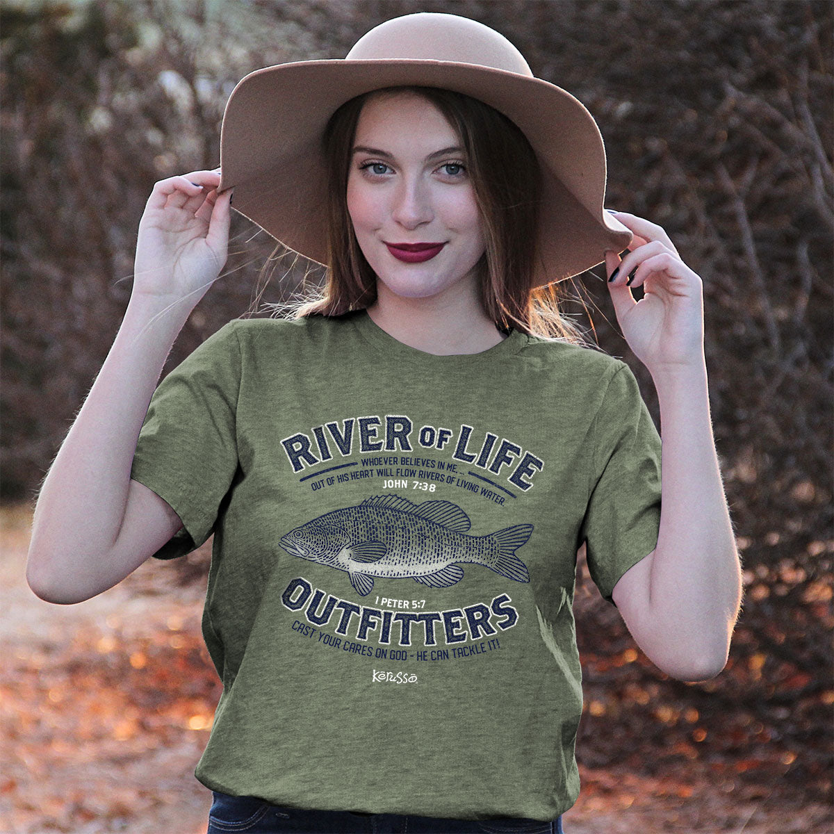 When you pull on this shirt made for the outdoors, the “outfitters” motif will invite many conversations as fishing enthusiasts sidle up to ask how many you've caught and where you fish or swap stories. Make sure your story involves sharing the gospel with all who stop you on the river or lake! #kerusso #FishingRiver
