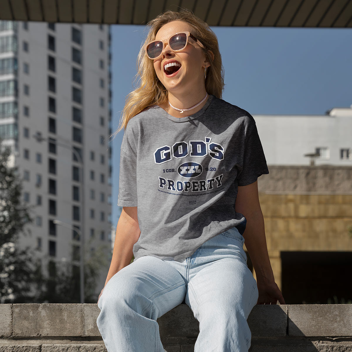 The phrase God’s Property reflects powerful biblical truth — you belong to the Lord, fully and completely. This shirt is a reminder of your worth, your purpose, and your identity as a child of God. Its timeless styling makes it perfect for everyday wear, youth ministry, worship nights, or outreach events.