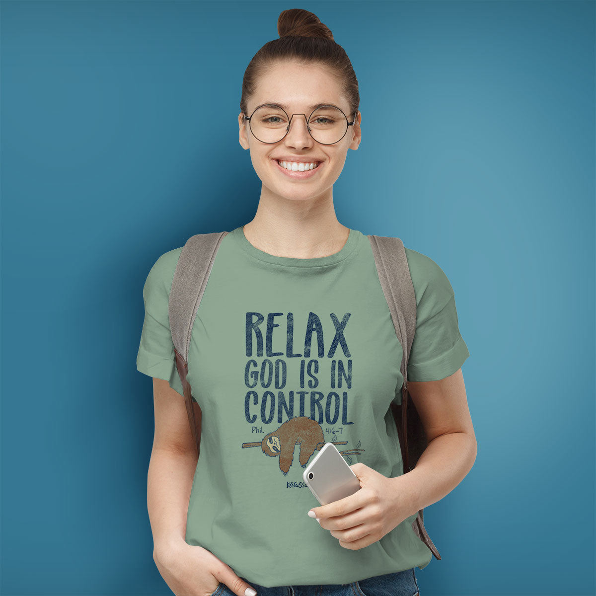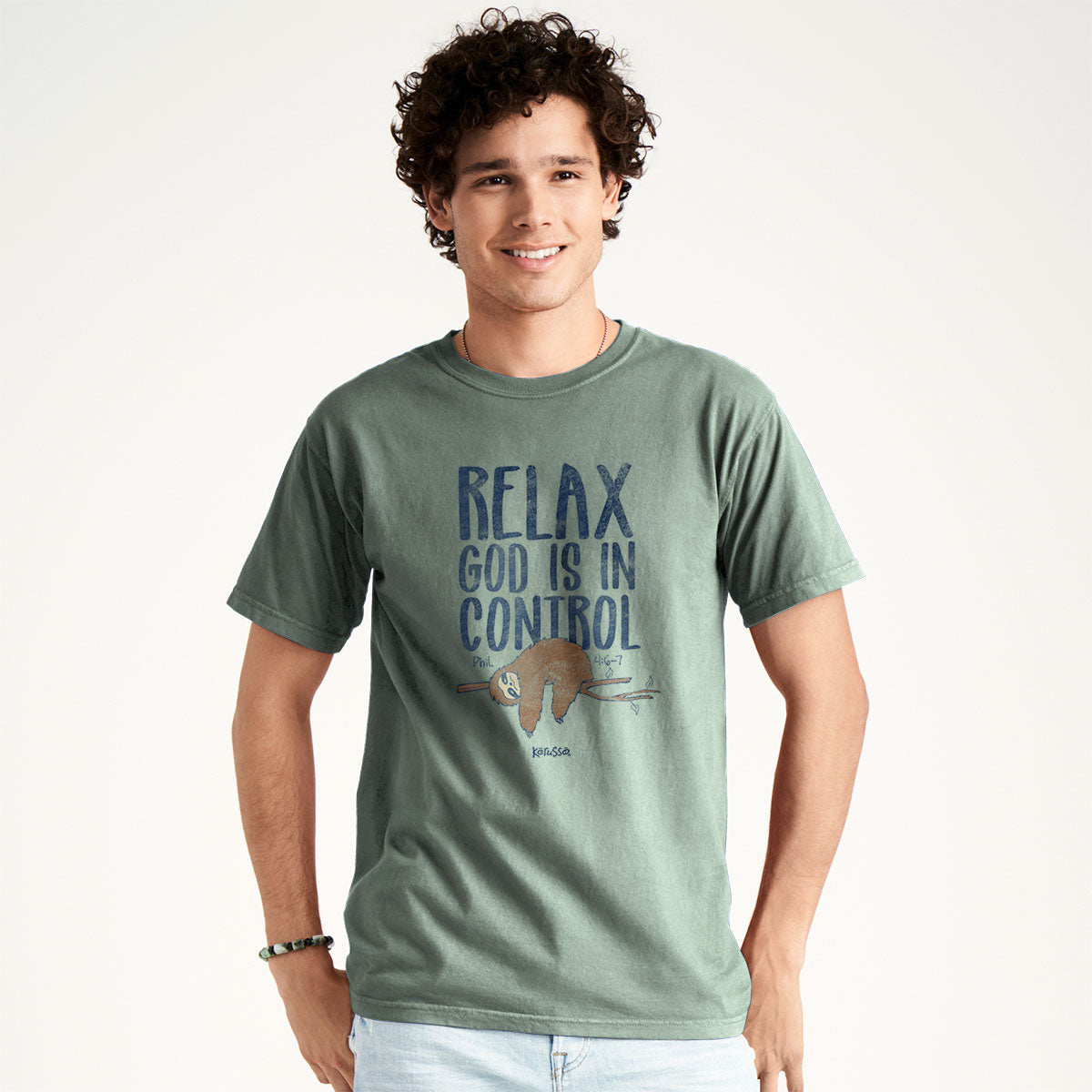 Encourage weary travelers on the road of life in this “Relax Sloth” T-shirt in Sagestone. Bone-tired or just spun-out by life, scores of people need to know that they aren't alone and they aren't failures. They're just tired, and it's time to tell them that God is in control!