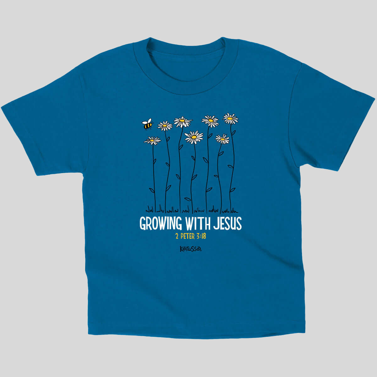 Help kids bloom and thrive in this endearing “Growing With Jesus” T-shirt by Kerusso® Kidz in Turquoise. Day by day the Lord is transforming the lives of children who follow Him, strengthening their faith as they learn and grow.