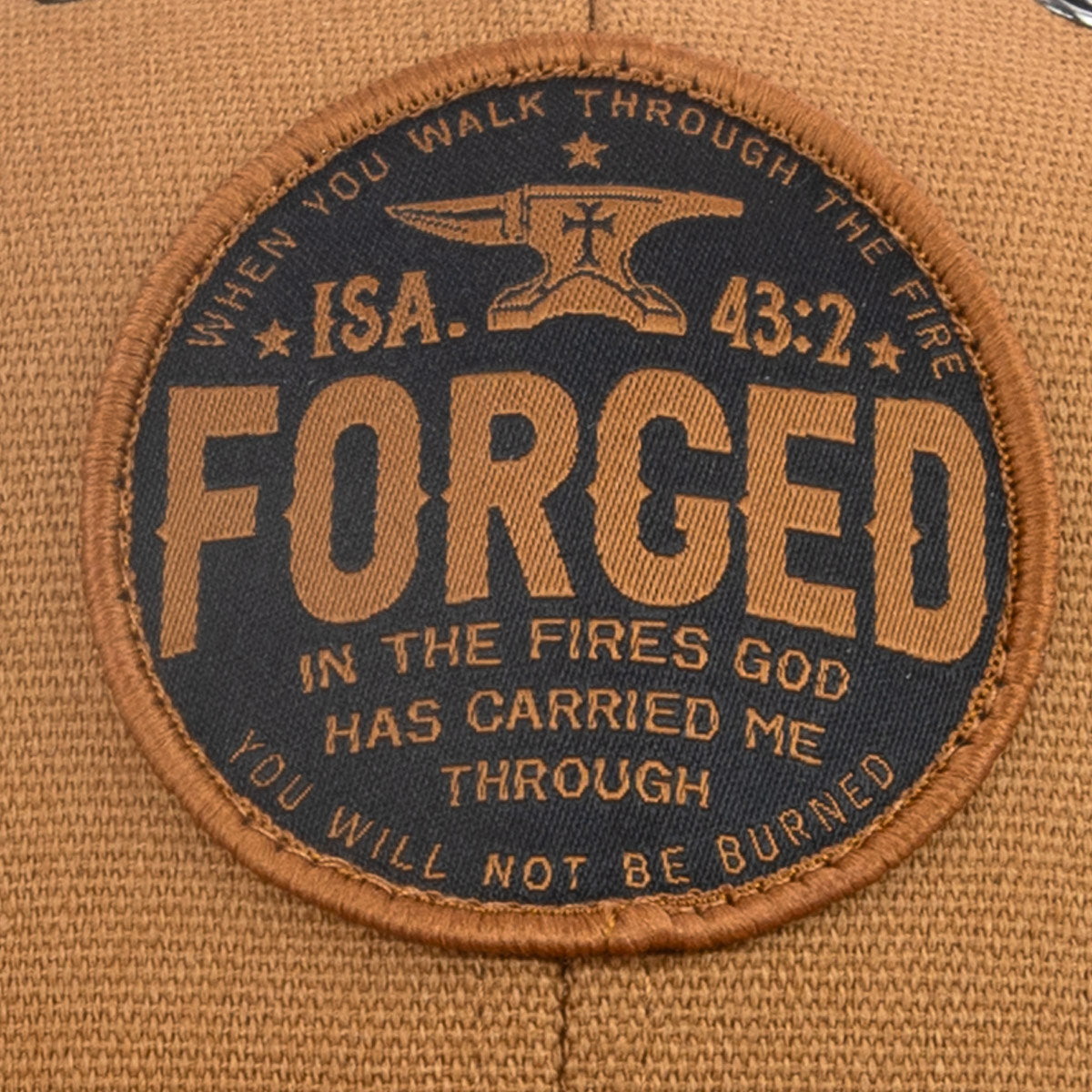 Built through faith and fire, the “Forged Circle” Mid-Rise Cap by Kerusso® reflects strength shaped by God. Featuring a woven circular patch and rugged earth tones, this design draws inspiration from Isaiah 43:2, reminding believers they are refined—not broken—by life’s challenges.
