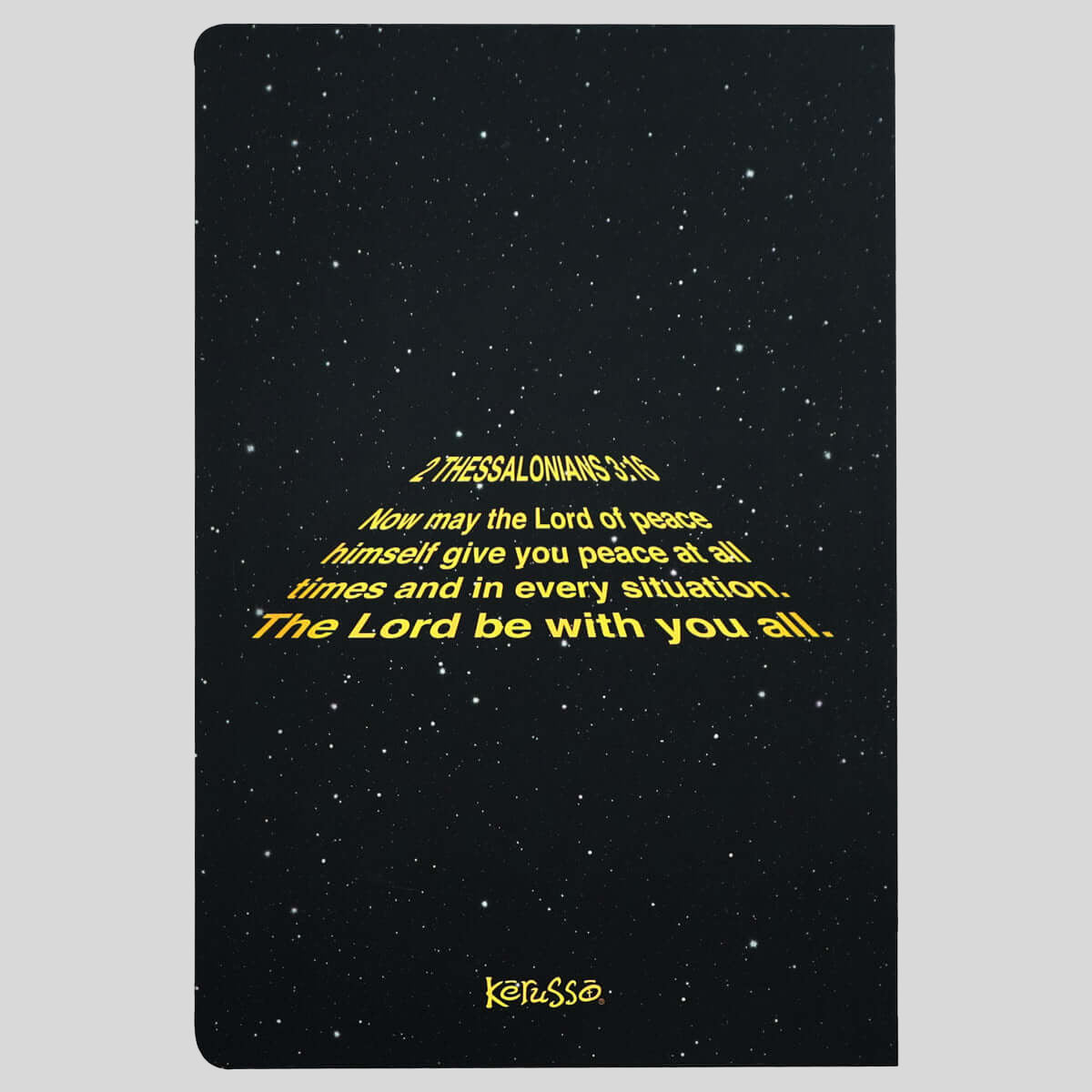 Give a shout-out to the Lord with this outergalactic “May The Lord” Men’s Paperback Journal by Kerusso® in Black. No force in the universe is stronger than our great God, and when you focus on the Lord, your faith will yield incredible results. Kerusso Journals are perfect for recording personal reflections, Bible study notes, or moments of gratitude.