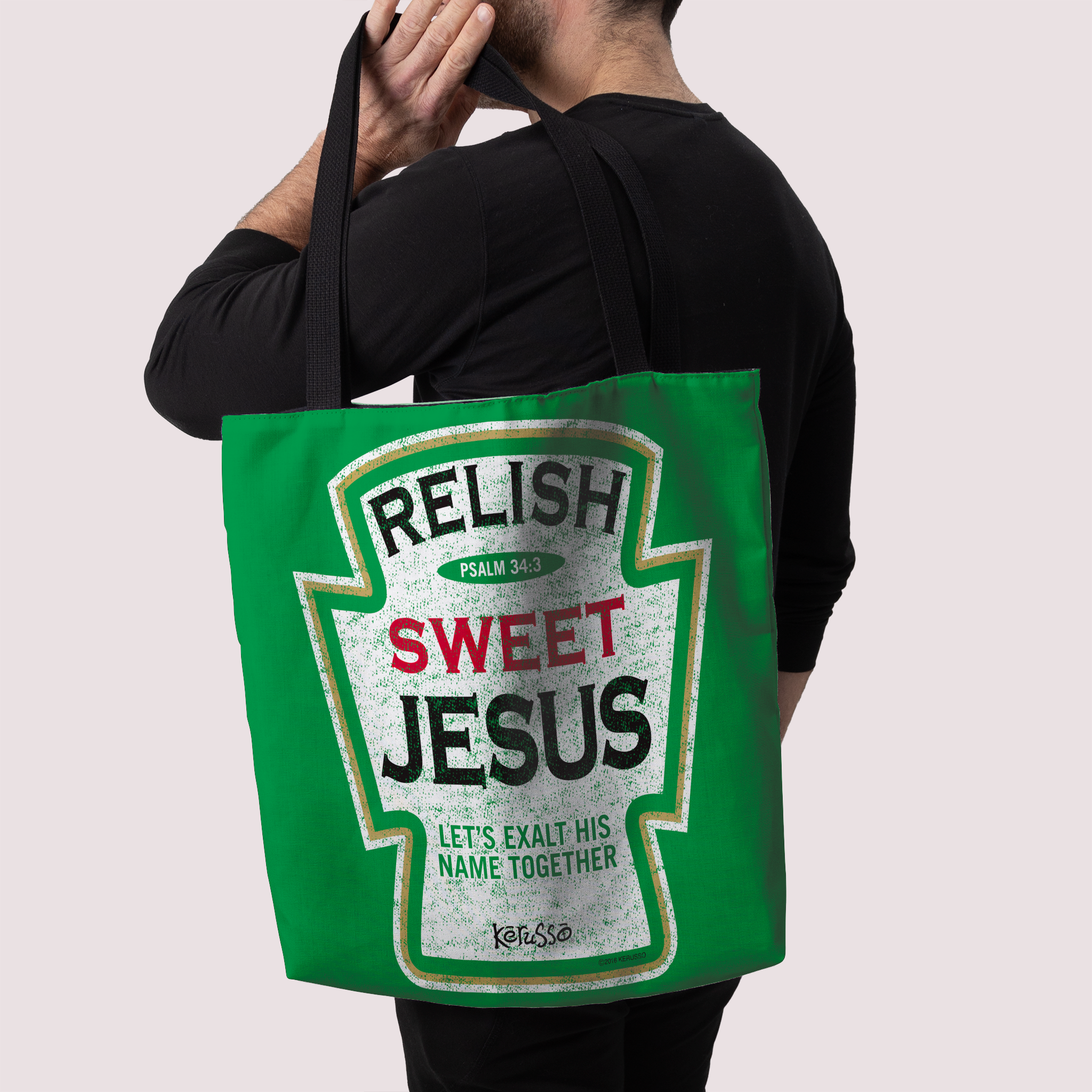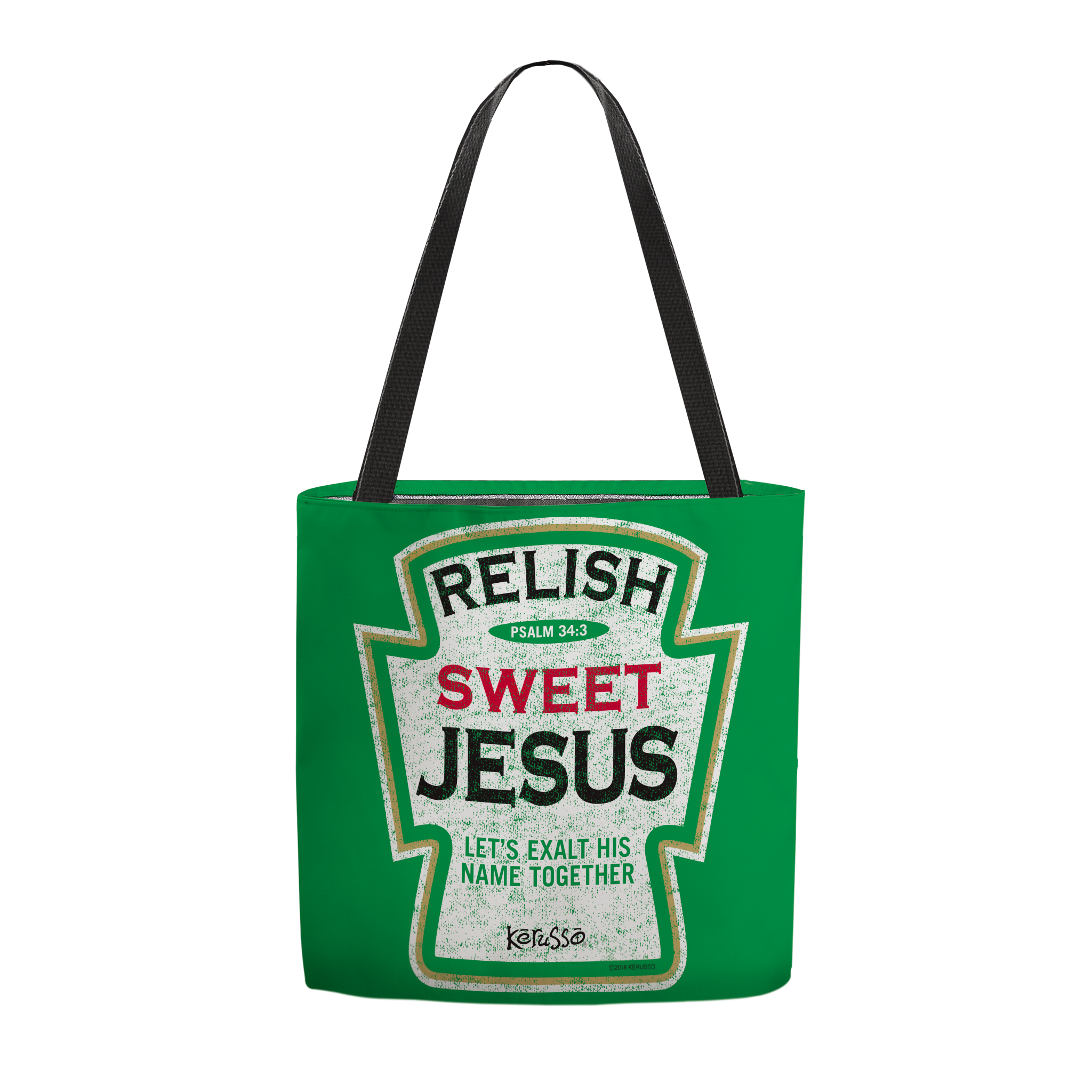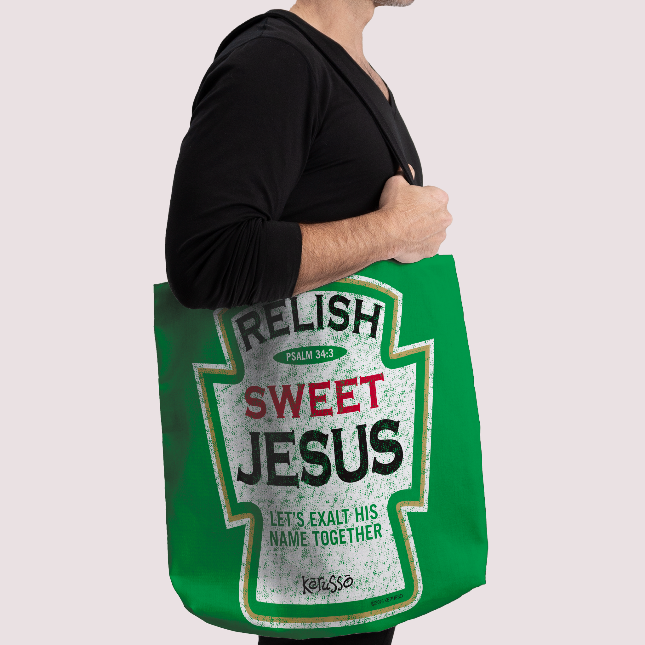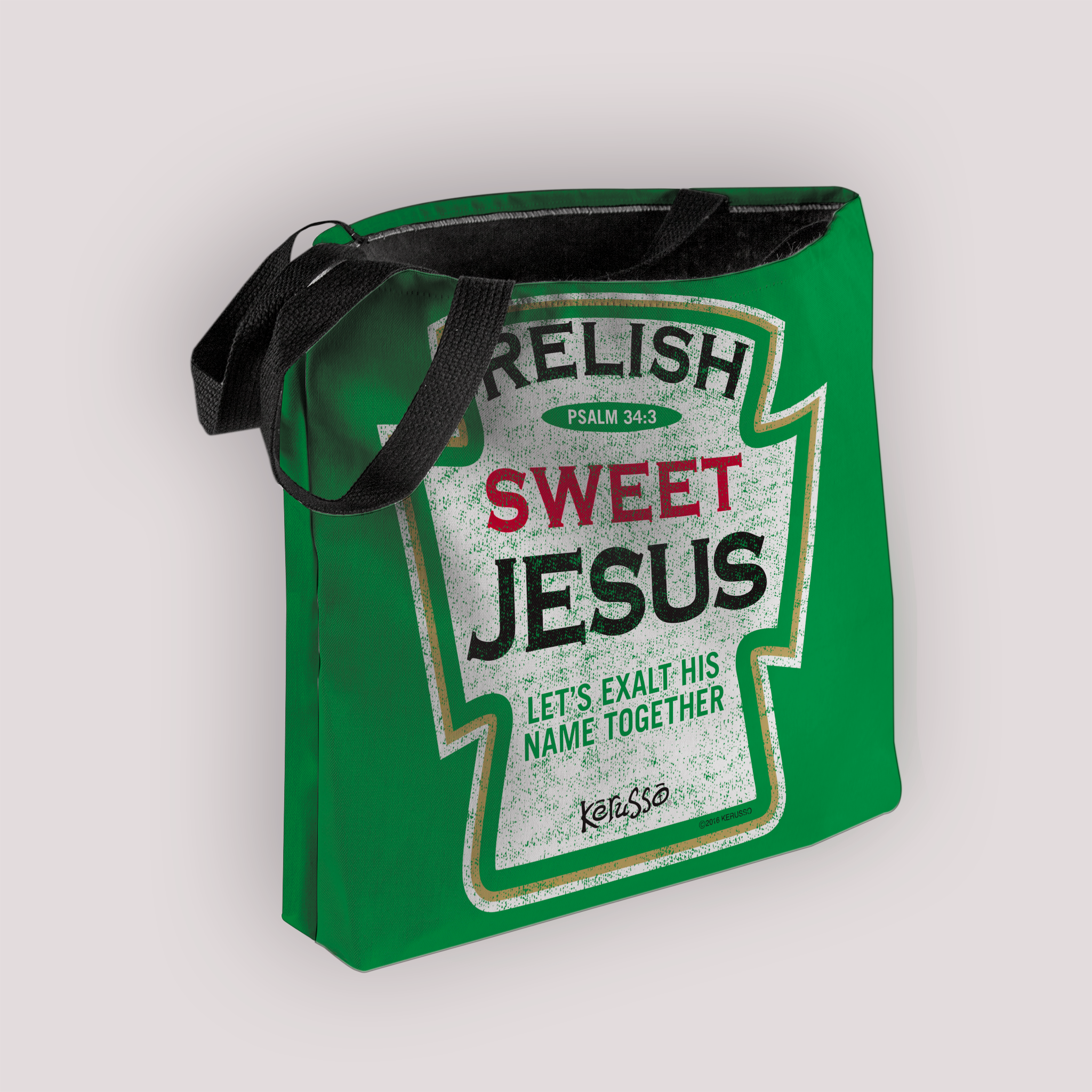 Carry your faith with joy wherever life takes you with our Relish Sweet Jesus Classic Tote Bag!