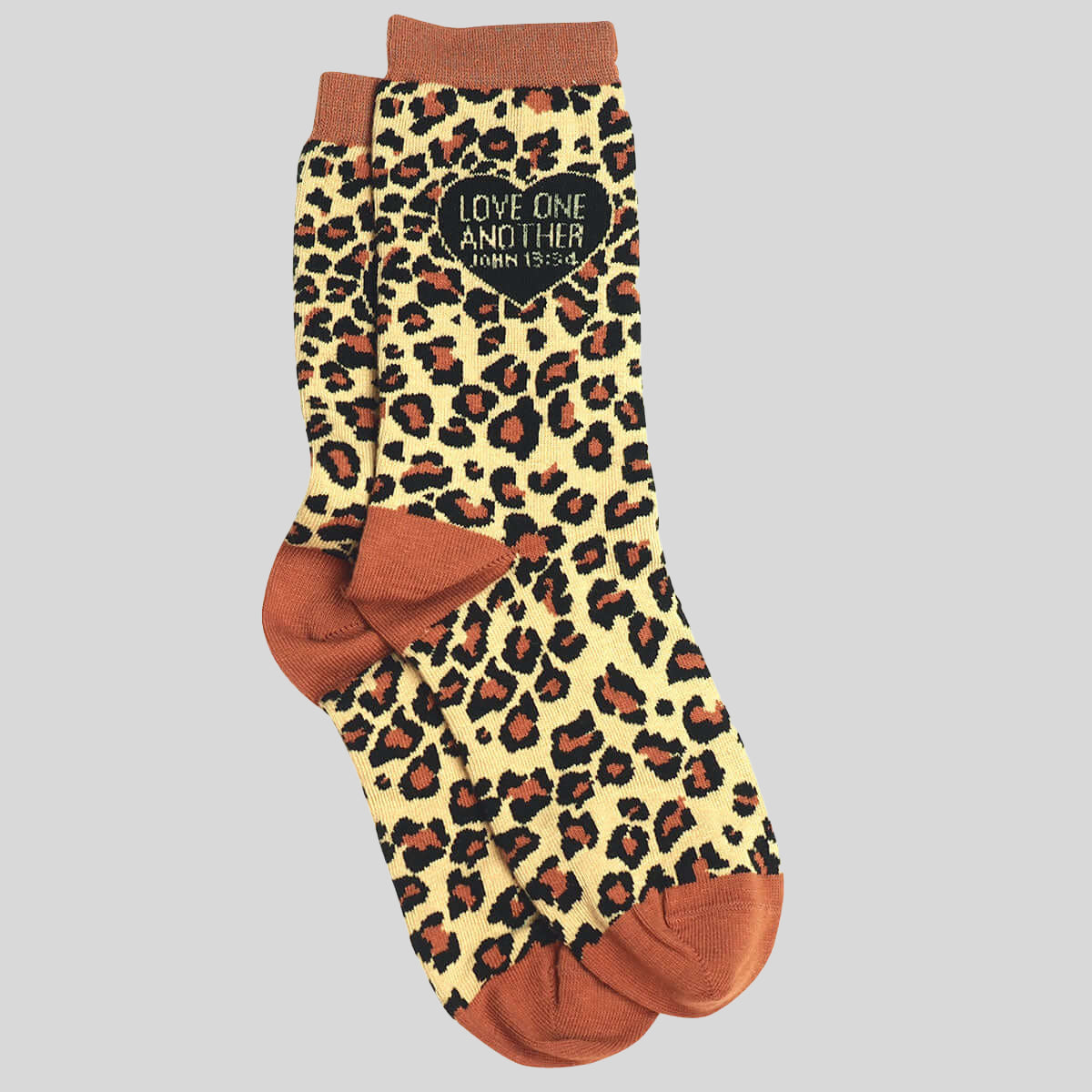 These chic Leopard crew socks are a stylish reminder to shine God's light for others to see. Every person you meet is a child of God, but not everyone knows the Lord, or has a personal relationship with Jesus. Tell others of His love, and pray for the Lord to be near to all of His children.