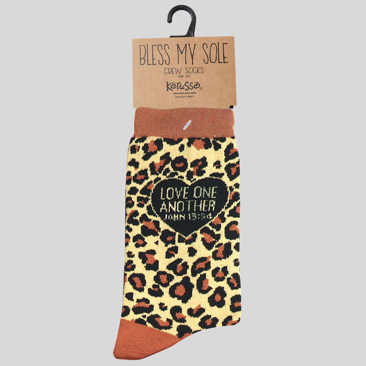 Share God’s love with these stylish “Leopard” Crew Socks by Kerusso® in Leopard Print. You have an opportunity to choose love in every situation. We have hope and a future not because we deserve it, but because God loves us so, and gave us an incredible gift of grace through His Son, Jesus Christ. The Lord commands us to love others freely in the same way. These comfortable, absorbent cotton-poly blend socks are a fun addition to your casual wardrobe.