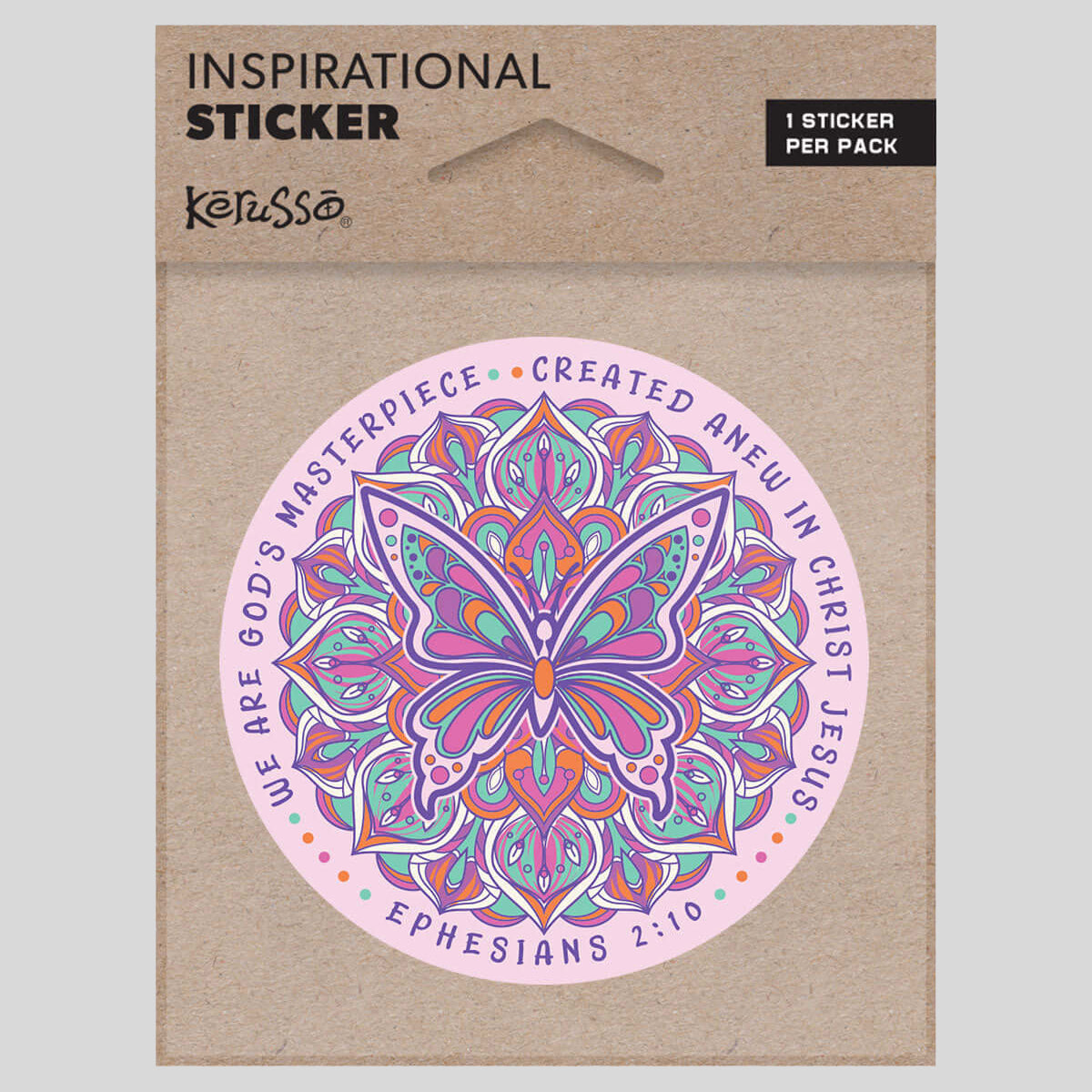 Climb out of your cocoon and let your spirit take flight with this pretty “God’s Masterpiece” Sticker by Kerusso®. You are an original work of art, created by God, who has an incredible plan for your life! These weather- and fade-resistant stickers are perfect for your car or bike, stainless tumbler, laptop, or anywhere you want to inspire yourself and others to keep the faith!