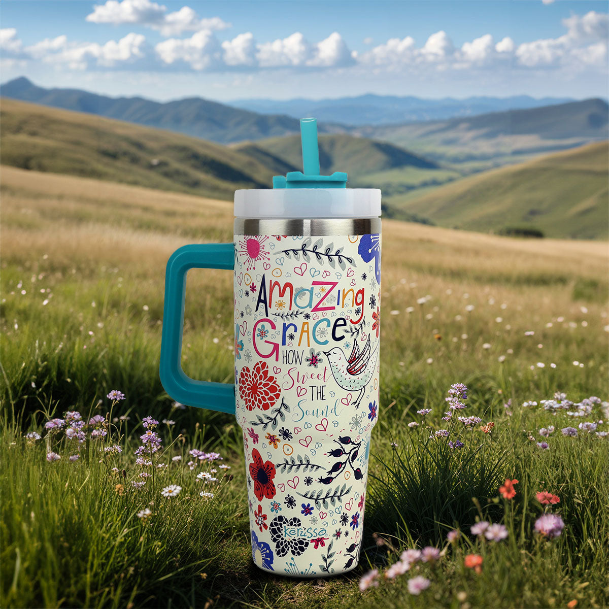 Each item in our “Amazing Grace” bundle of joy provides a tangible reminder to accept God’s grace for yourself, and to offer it freely to others. An attractive soft touch paperback Journal, 30 oz. Stainless Steel Mug with Straw, and Keychain Wristlet make a generous gift together, or give each item separately.