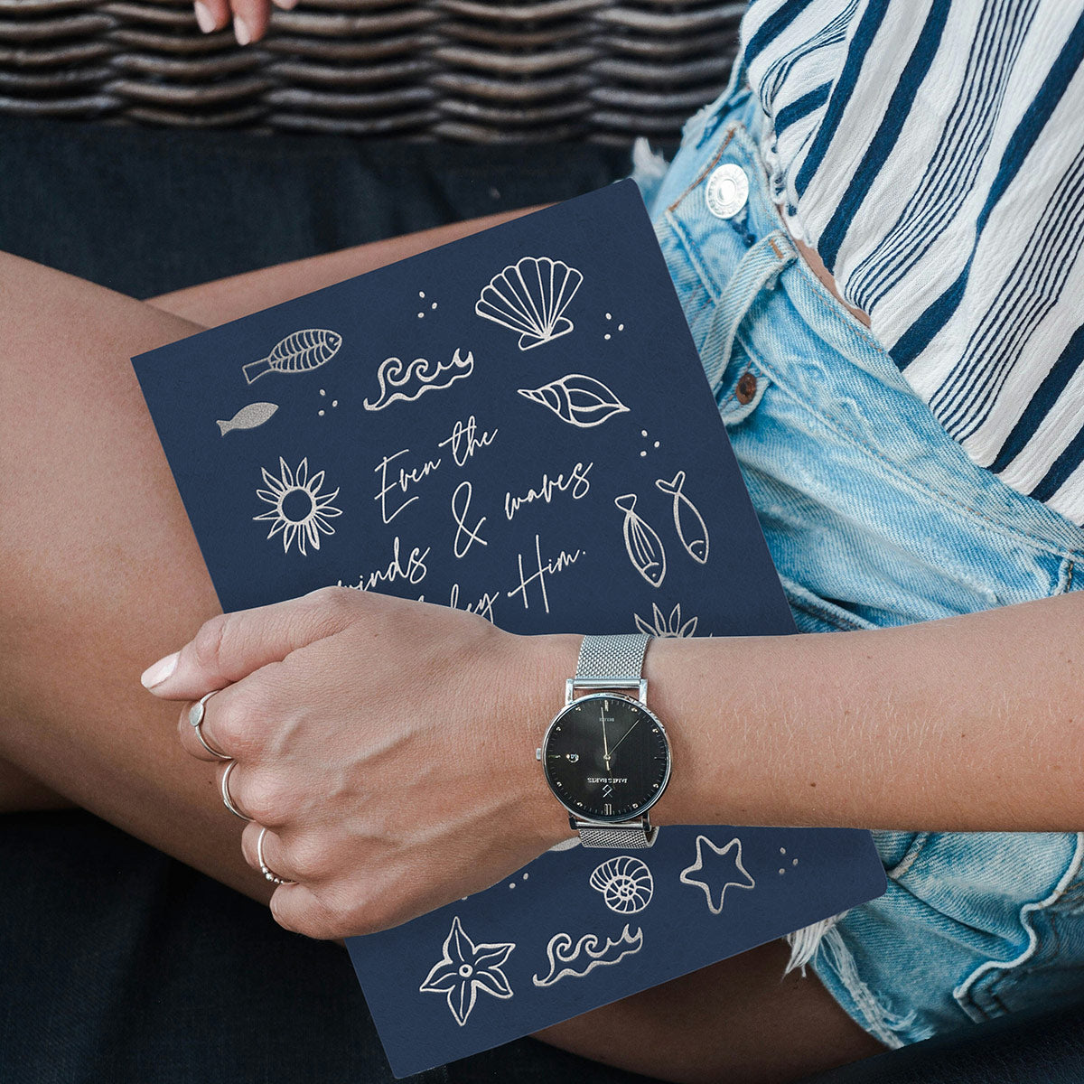 Be reminded of Christ’s authority over every storm with the “Wind And Waves” Faux-Leather Journal by Kerusso®. Featuring navy tones, seashells, and silver foil accents, this coastal-inspired design reflects Matthew 8:27, “Even the winds and waves obey Him.” A peaceful journal for recording faith-filled thoughts and prayers.