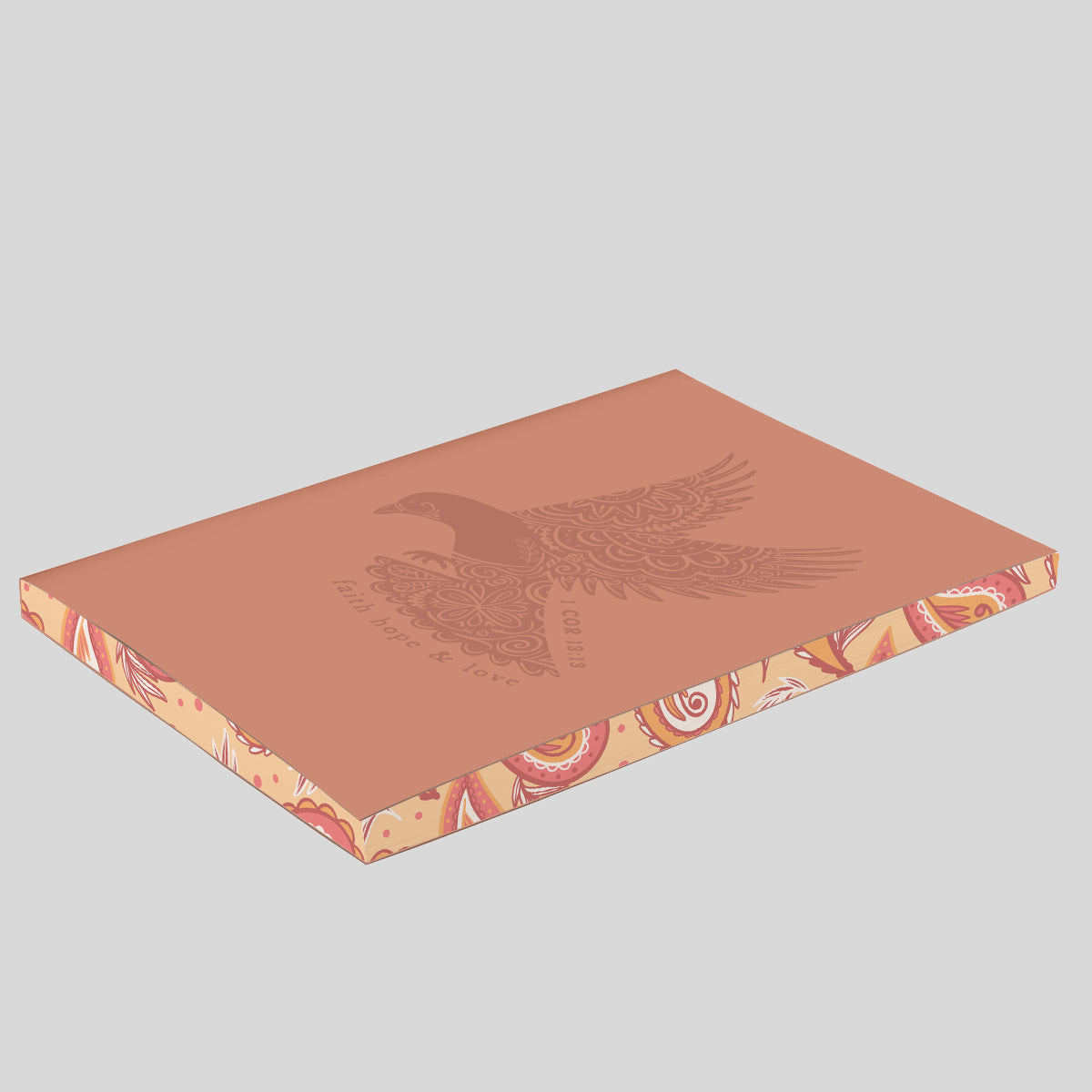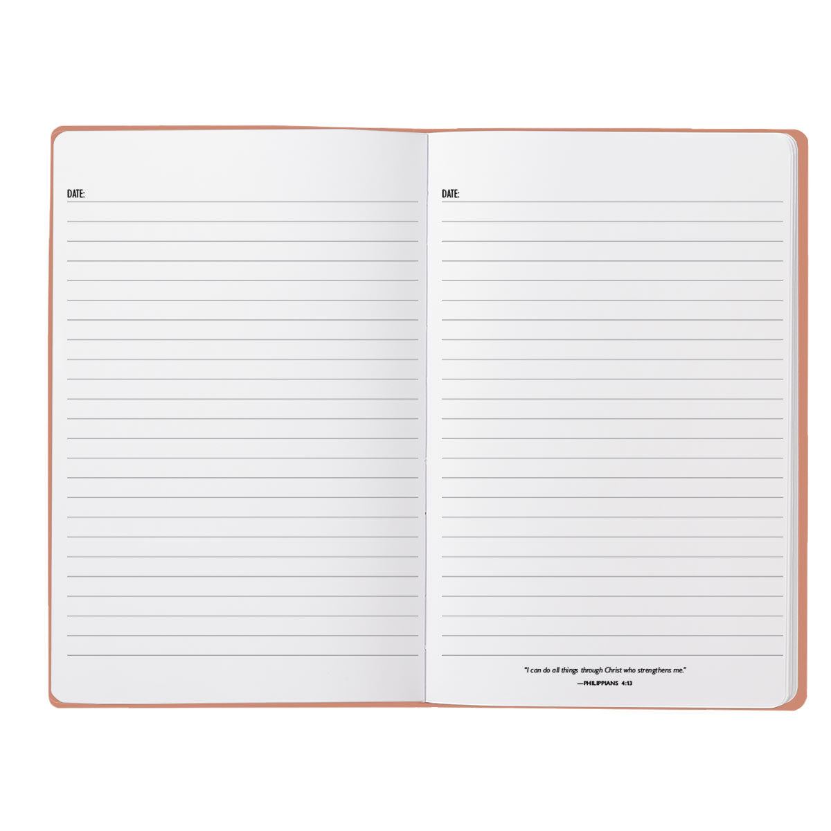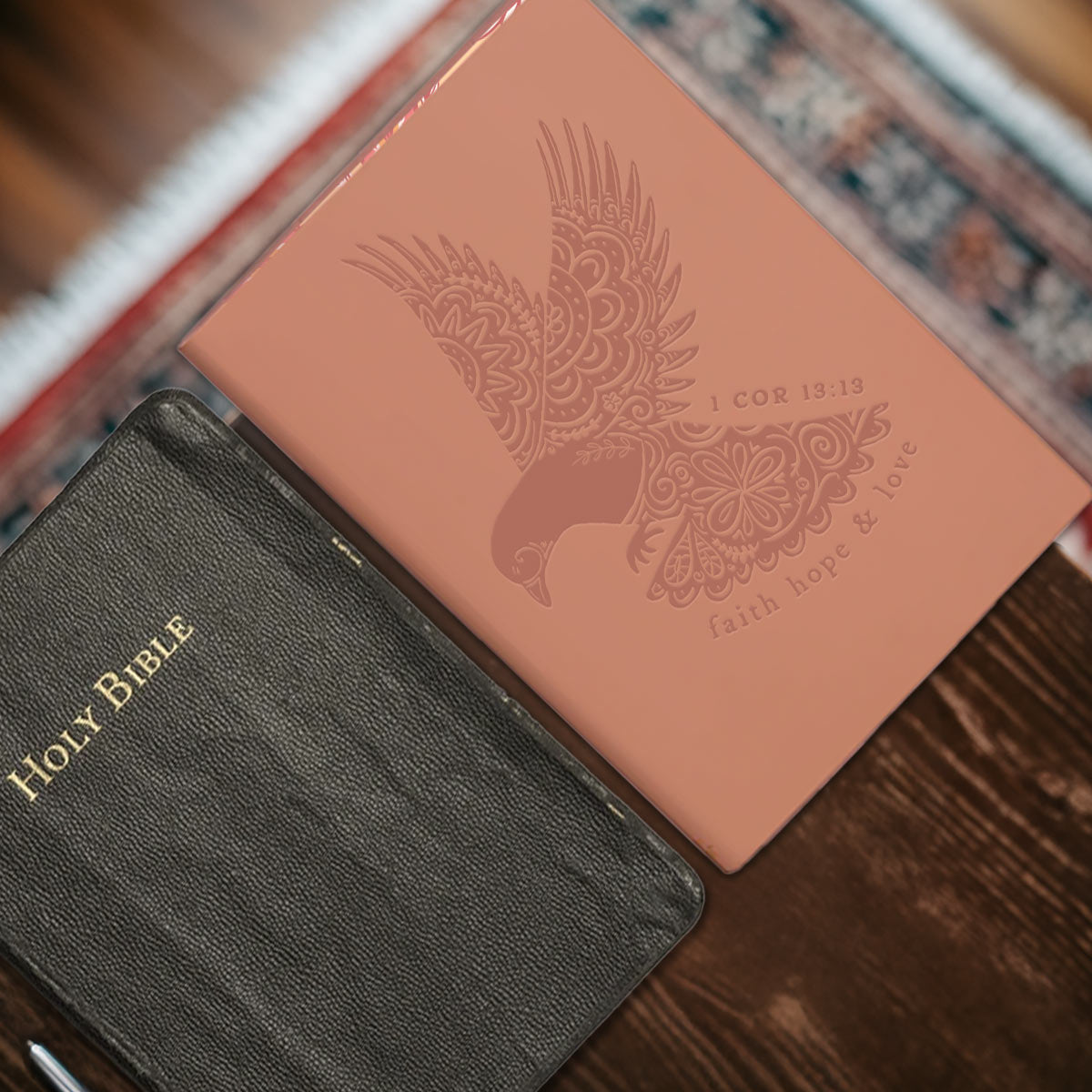 Make a chic statement of faith with this “FHL Dove” Journal in soft Pink by Kerusso®. Belief in Jesus sets us free to fly through life with faith, hope, and love for the journey. Bible reading, goal-setting, self-reflection...there are many reasons to keep a journal. This quality faux-leather journal is an excellent way to record notes, and features scripture or inspirational quotes on every page.