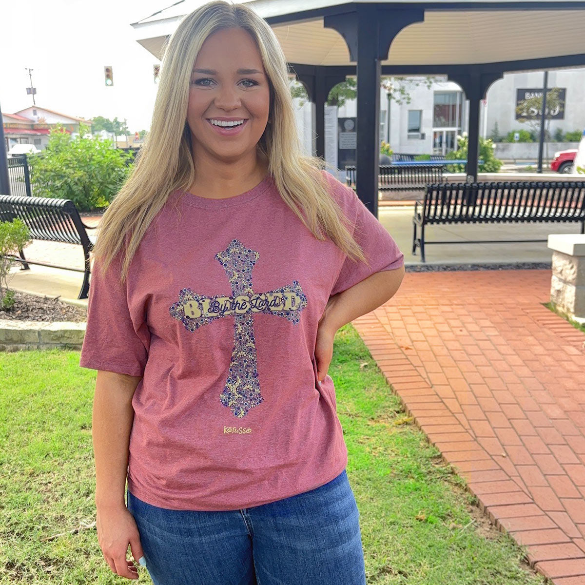 Proclaim your blessings in this pretty floral “Blessed Cross” T-shirt by Kerusso® in Heather Mauve. Delicate blooms in the shape of a cross offer a reminder of God’s many blessings as you go about your day.