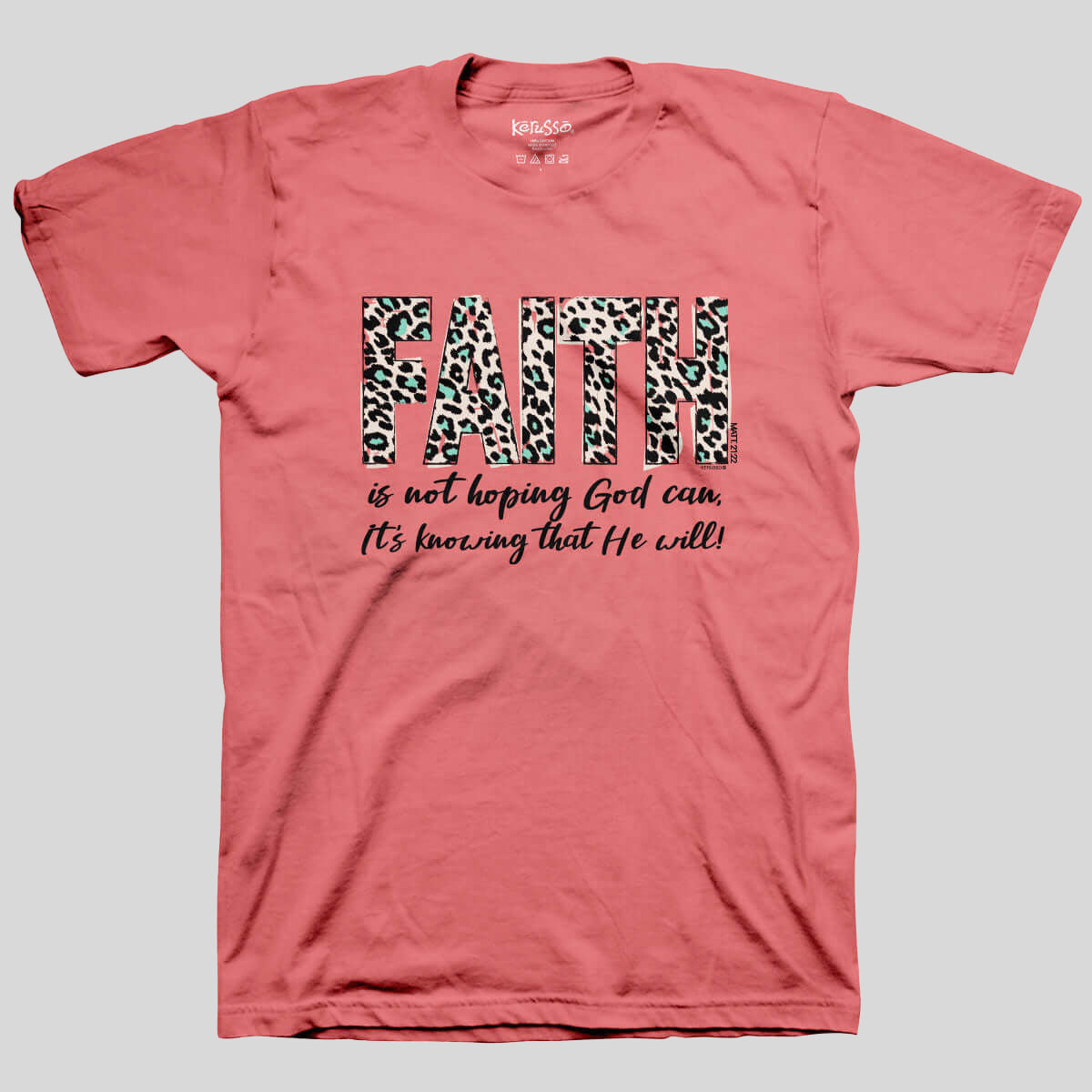 Stand strong in your faith in Jesus when you wear this cool “Faith Leopard” T-shirt by Kerusso® in Sorbet. You can place your hope in the Lord knowing He’s got this, whatever you face. No wimpy faith here—just a steadfast trust that God keeps His promises.