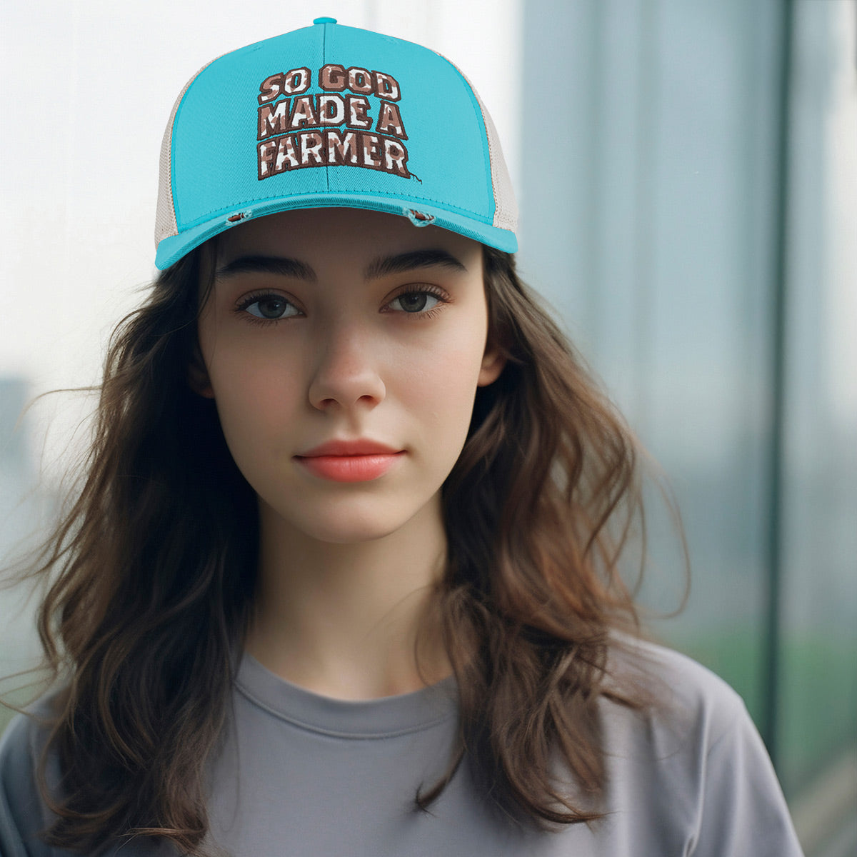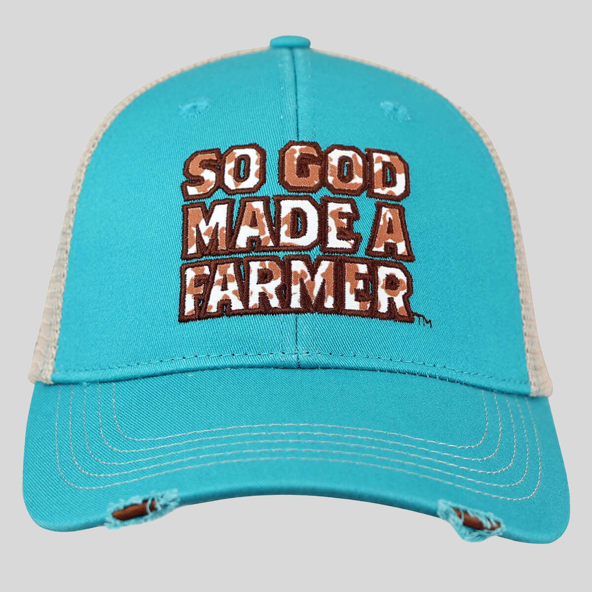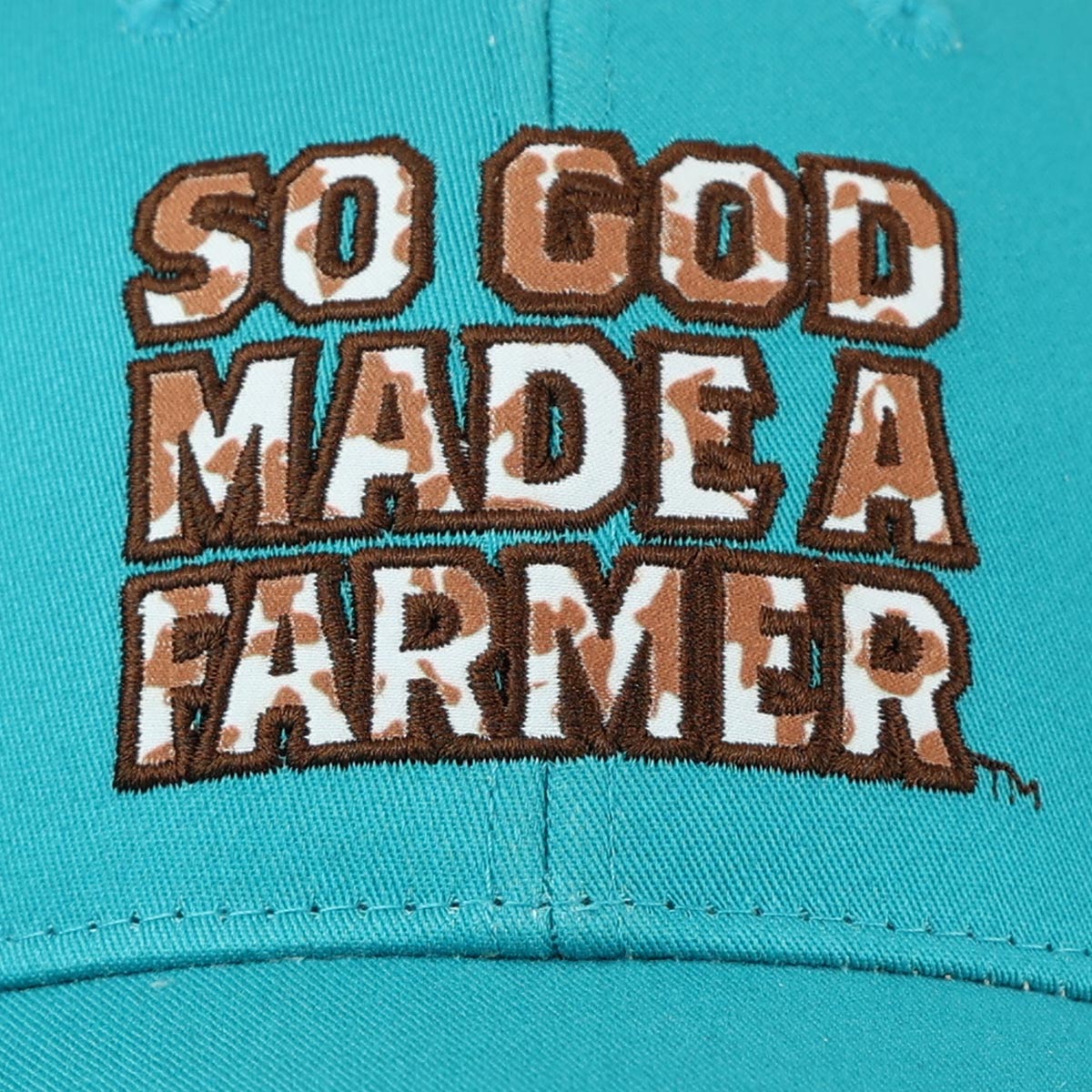 Moooove along city dwellers! This charming “Cowhide Fill” Cap by So God Made A Farmer™ brand apparel licensed by Kerusso® in Teal gives a memorable nod to the capable, can-do spirit of the farmers that form the backbone of this nation. Cattle need to be raised, fields tended to, and God calls on farm families to get it done, rain or shine.
